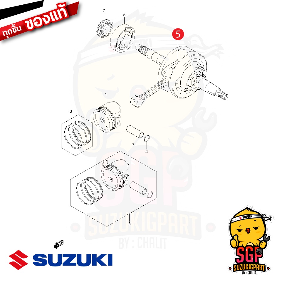 Sản phẩm "ชุดเพลาข้อเหวี่ยง CRANKSHAFT ASSY แท้ Suzuki Shooter 115 Fi / Smash 115 Fi" chính hãng được đặt trực tiếp từ "suzukigpart" Thái Lan, đảm bảo chất lượng và giá cả cạnh tranh.
