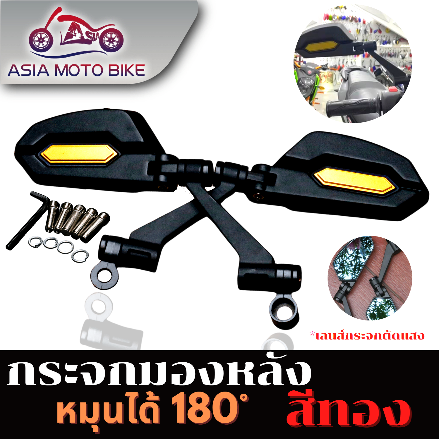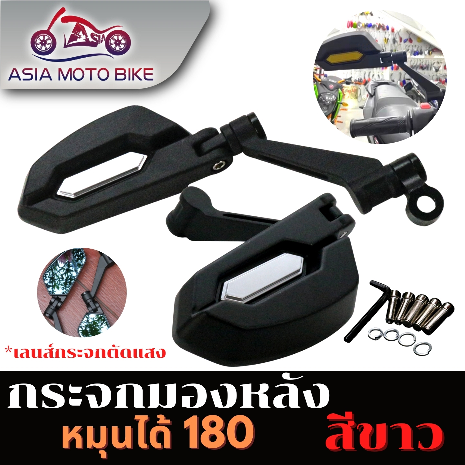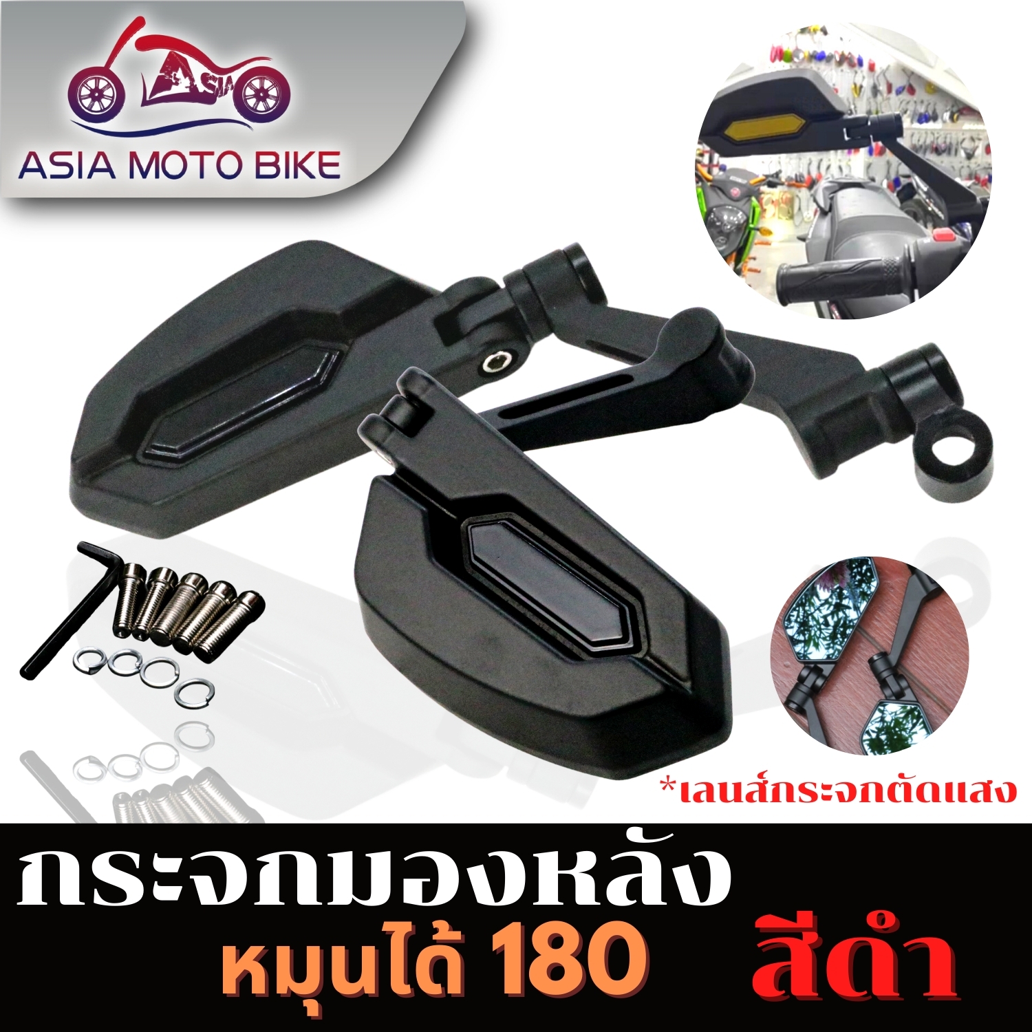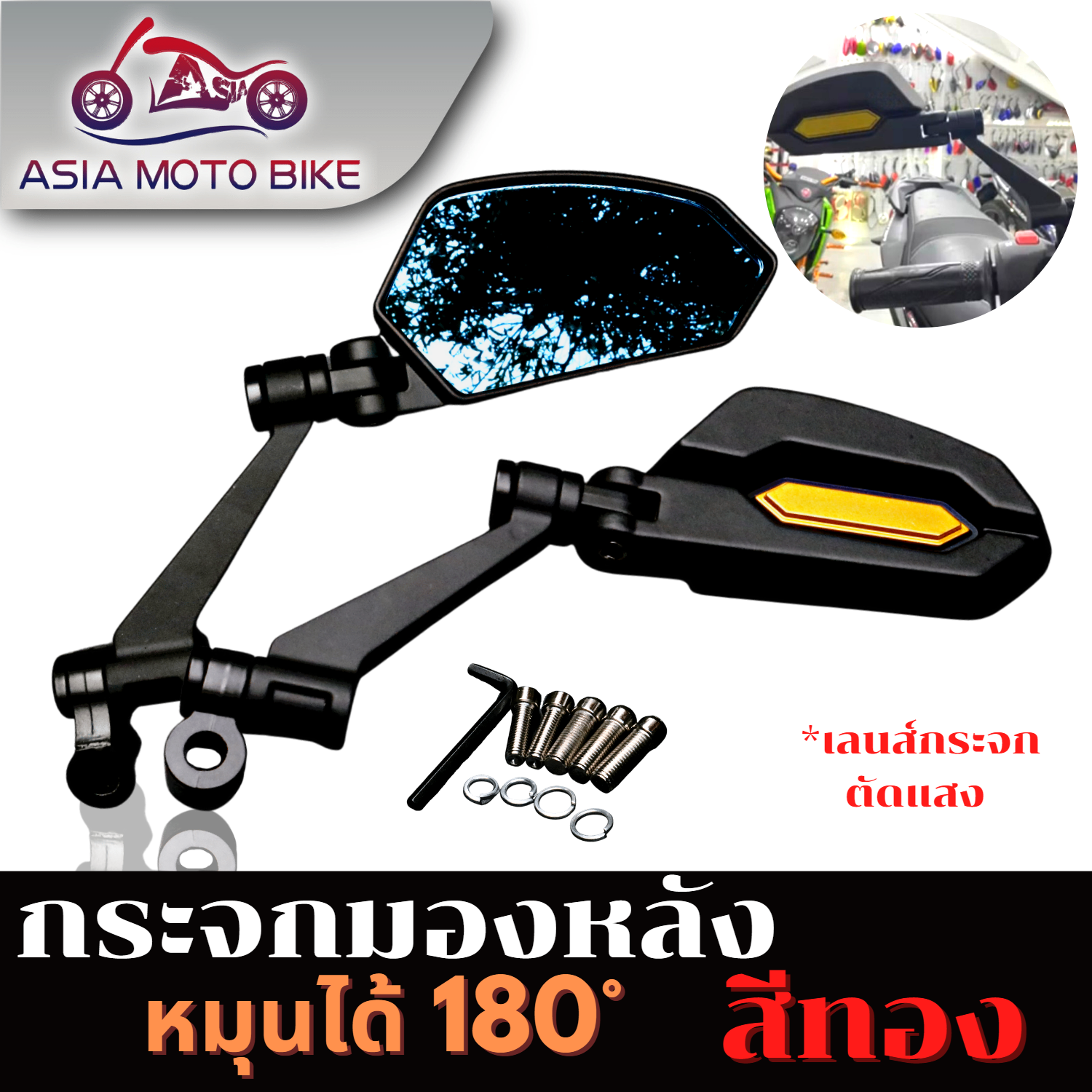 ASIA MOTOBIKE กระจกมองหลังแต่งทรงใหม่พับได้หมุนปรับได้180 องศา1คู่/เลนส์ตัดแสงสีฟ้า(ใส่ได้ทุกรุ่น)มี6สี