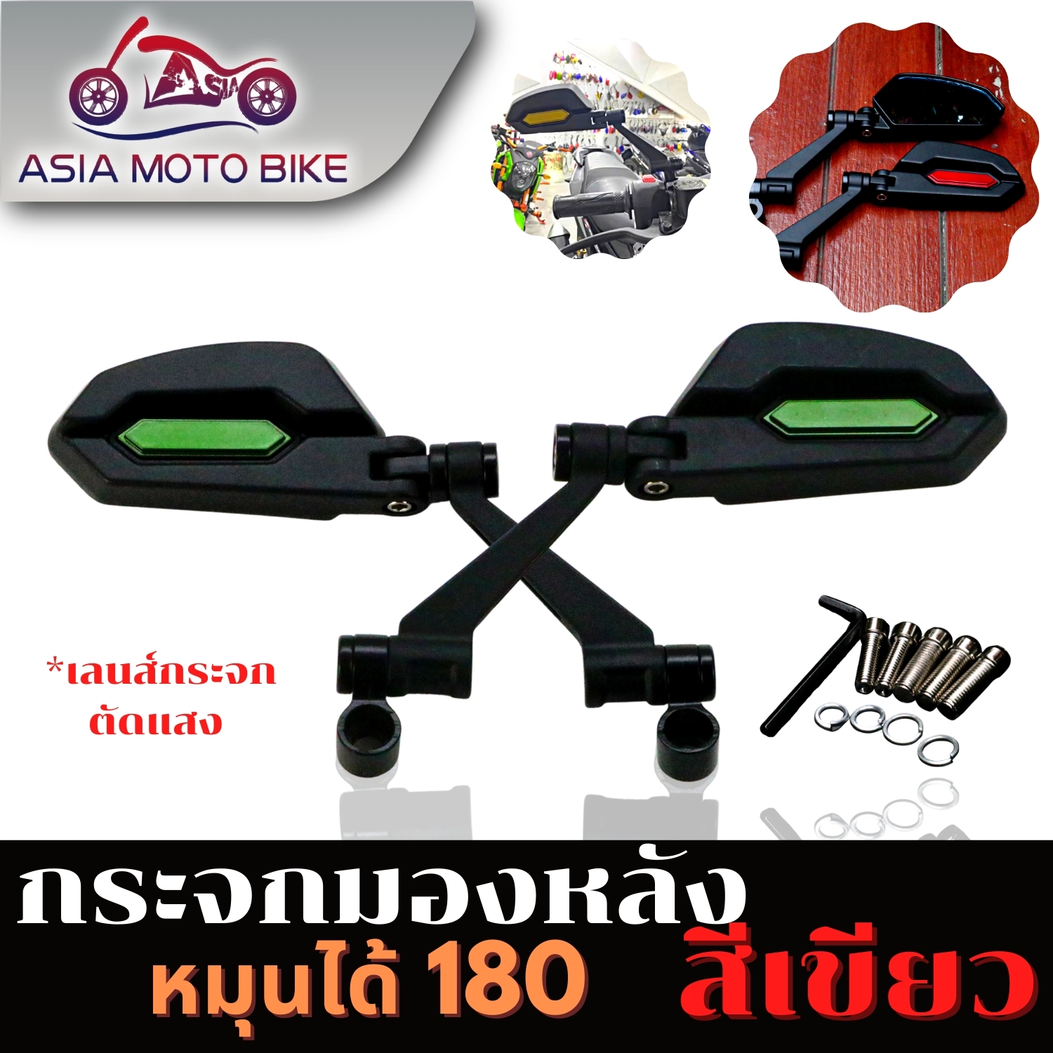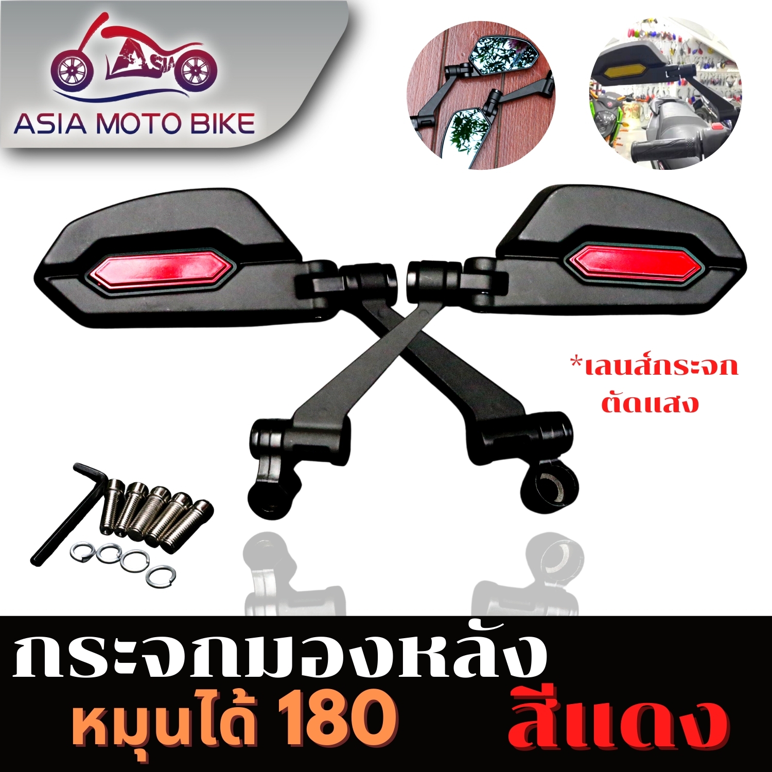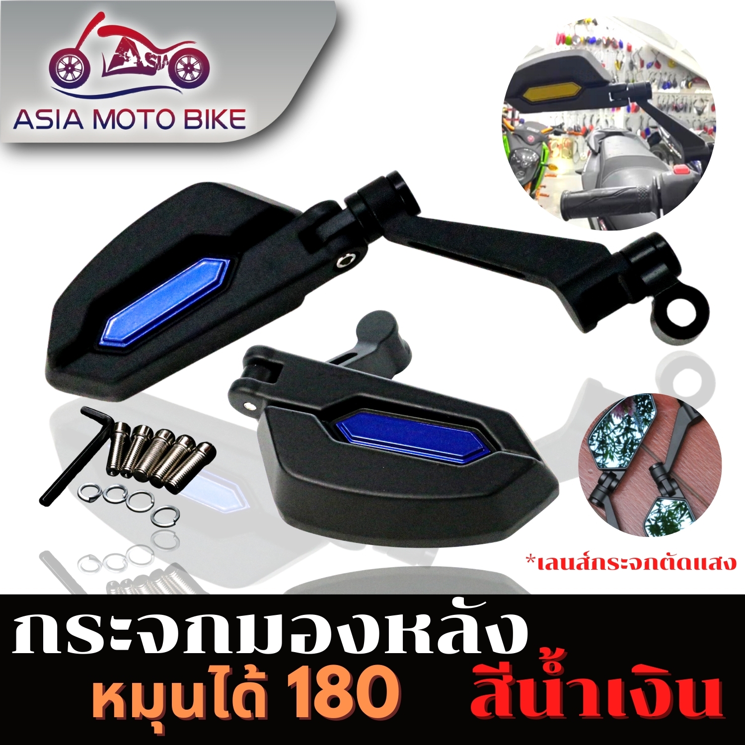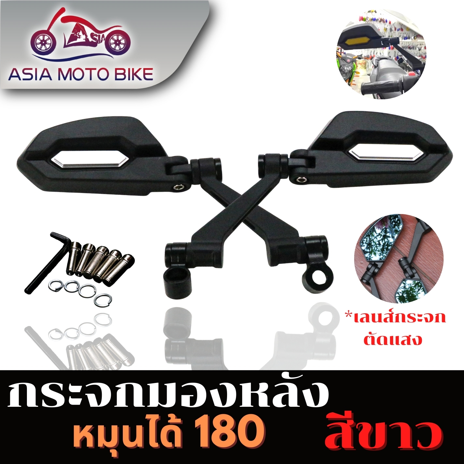 ASIA MOTOBIKE กระจกมองหลังแต่งทรงใหม่พับได้หมุนปรับได้180 องศา1คู่/เลนส์ตัดแสงสีฟ้า(ใส่ได้ทุกรุ่น)มี6สี