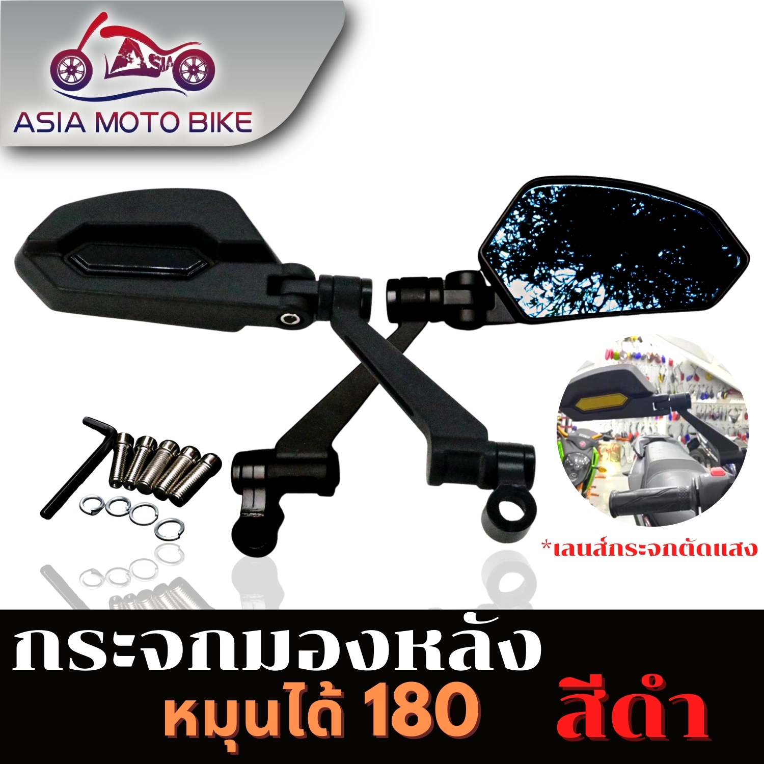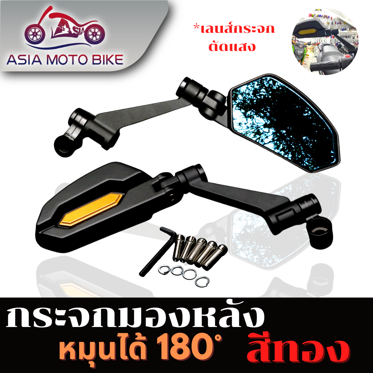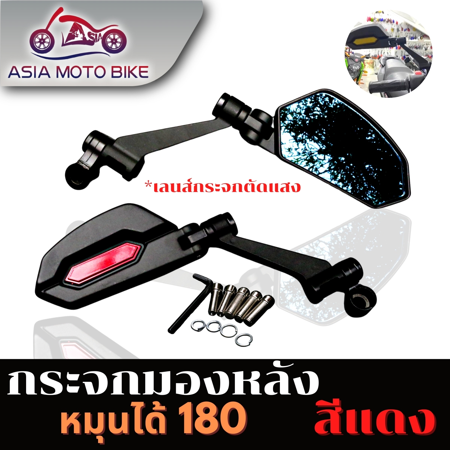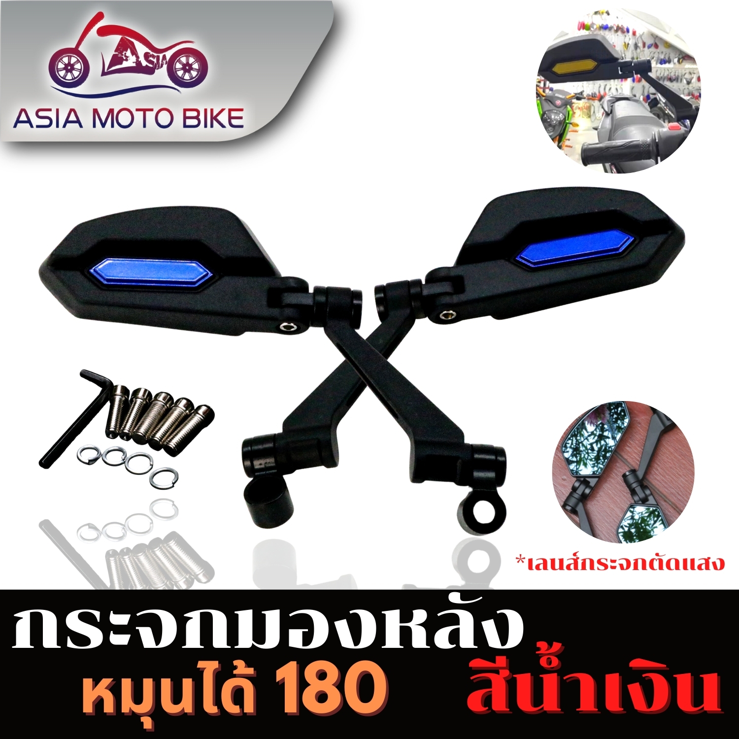 ASIA MOTOBIKE กระจกมองหลังแต่งทรงใหม่พับได้หมุนปรับได้180 องศา1คู่/เลนส์ตัดแสงสีฟ้า(ใส่ได้ทุกรุ่น)มี6สี