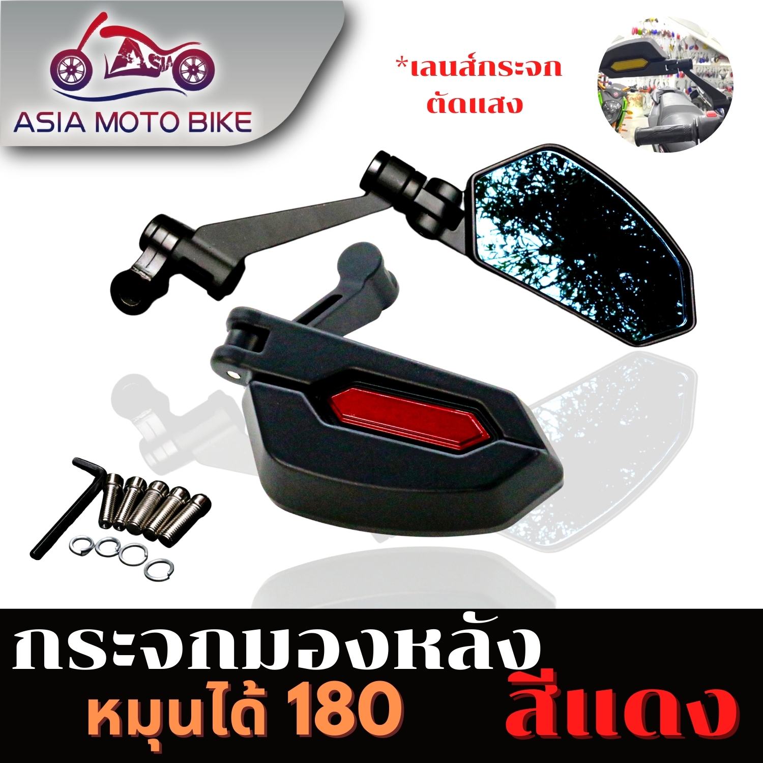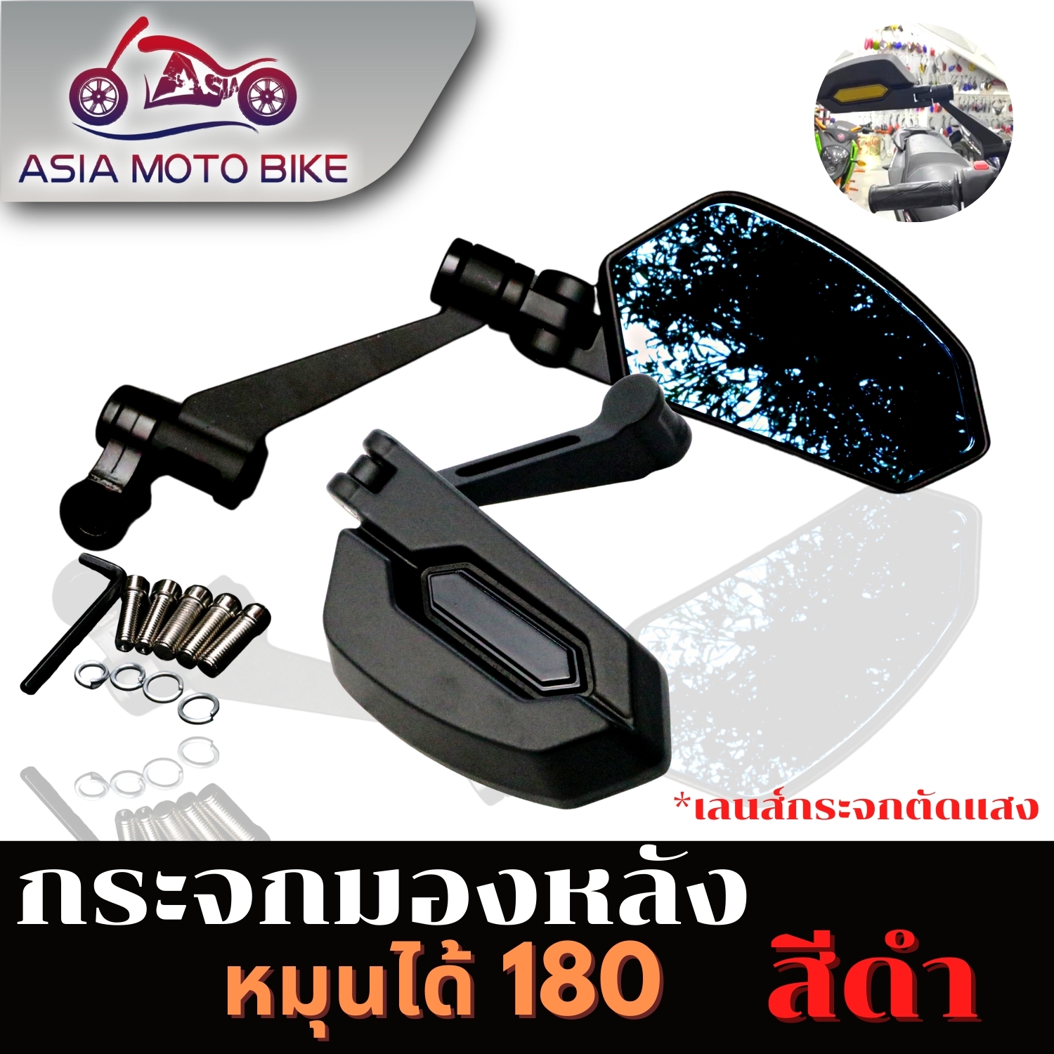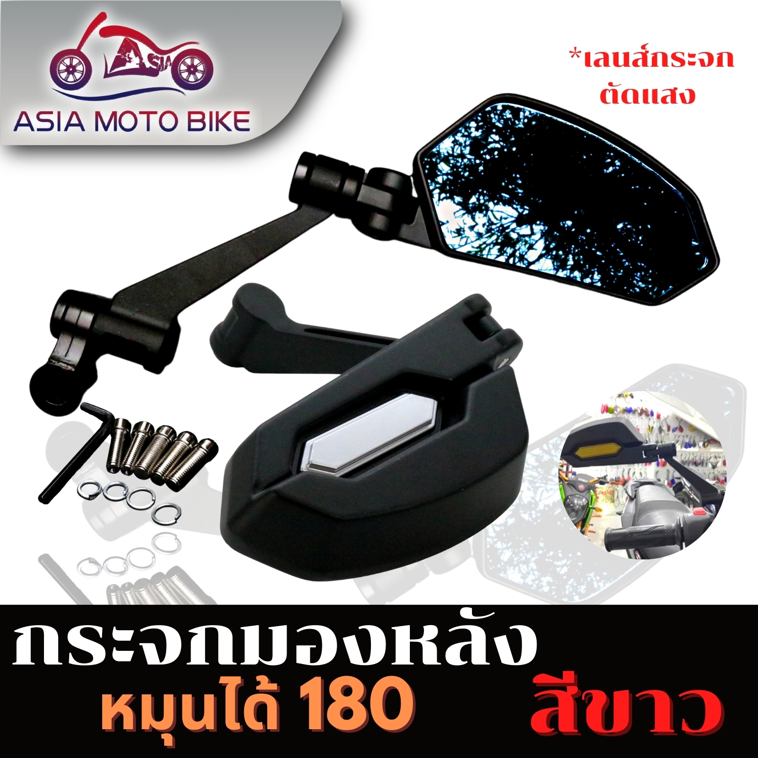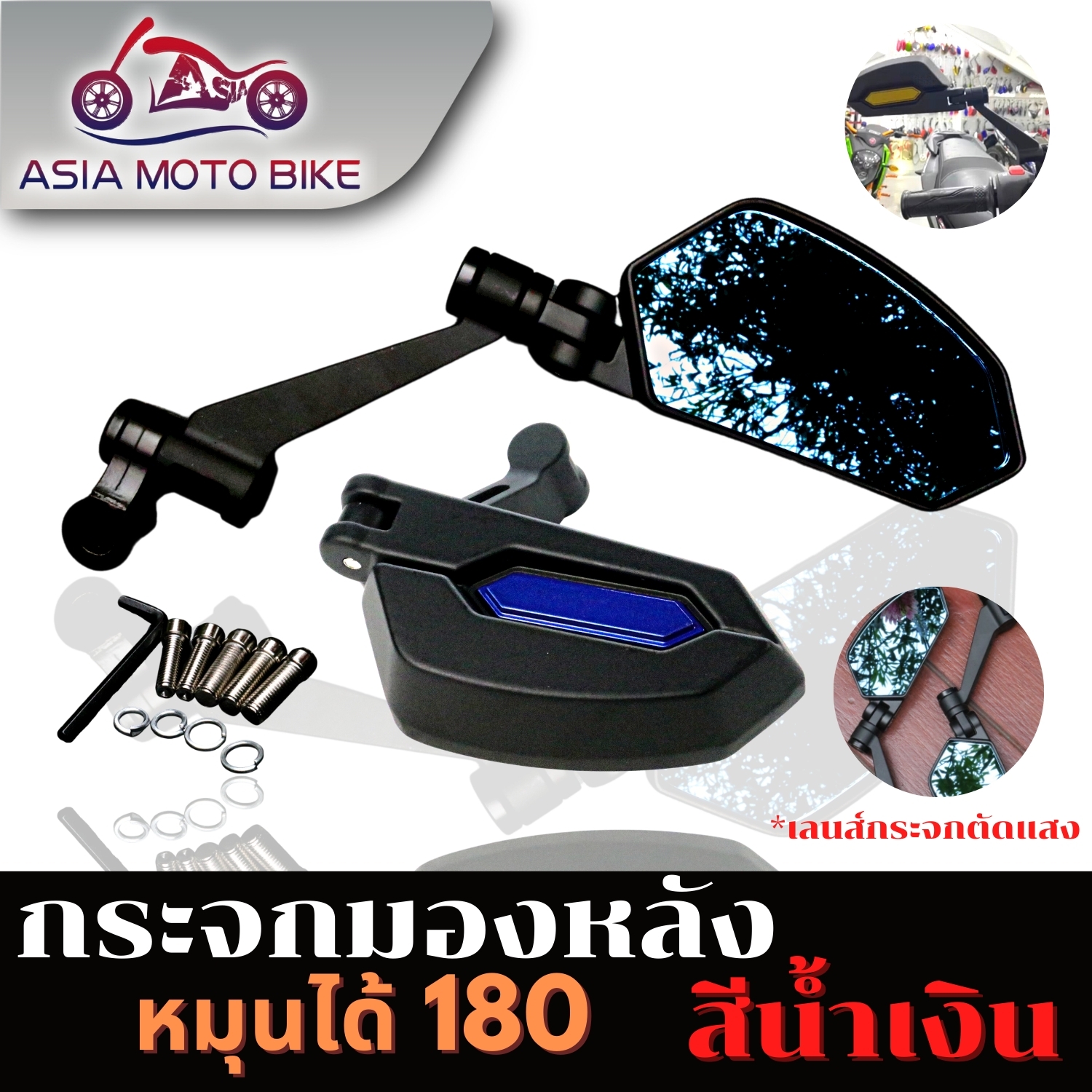 ASIA MOTOBIKE กระจกมองหลังแต่งทรงใหม่พับได้หมุนปรับได้180 องศา1คู่/เลนส์ตัดแสงสีฟ้า(ใส่ได้ทุกรุ่น)มี6สี