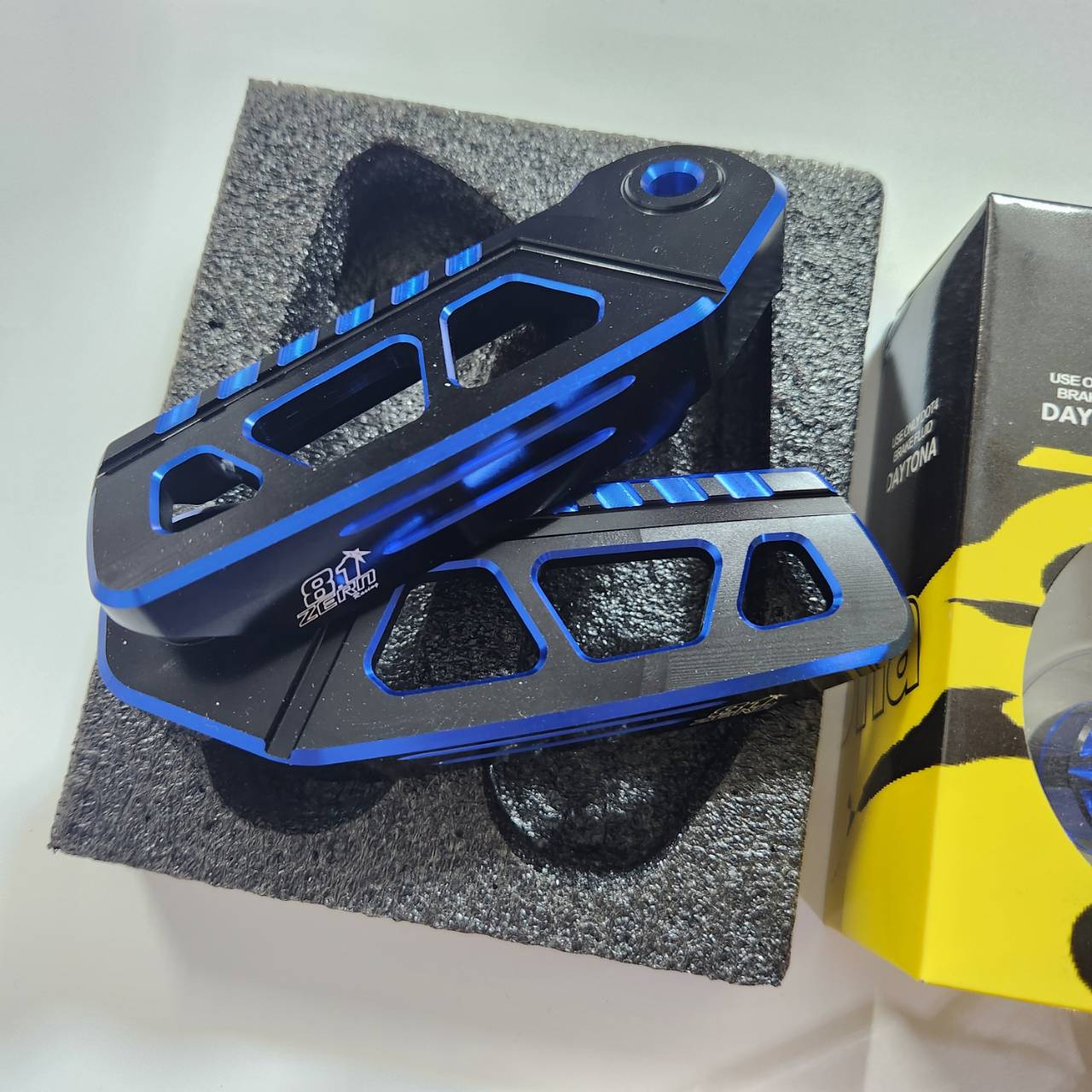 Bộ 4 mảnh GIORNO, đế chân sau ZERN8.1 màu xanh đen + chân đứng POWDER COAT màu xanh + ốp kính + ốp đầu cần DAYTONA.