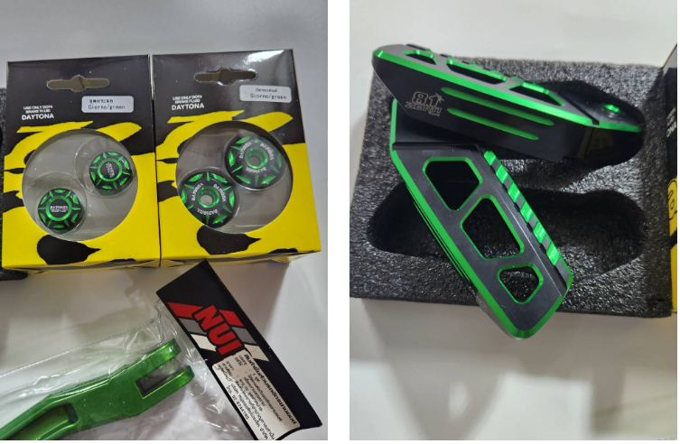 Bộ 4 mảnh GIORNO, đế chân sau ZERN8.1 màu xanh đen + chân đứng POWDER COAT màu xanh + ốp kính + ốp đầu DAYTONA.