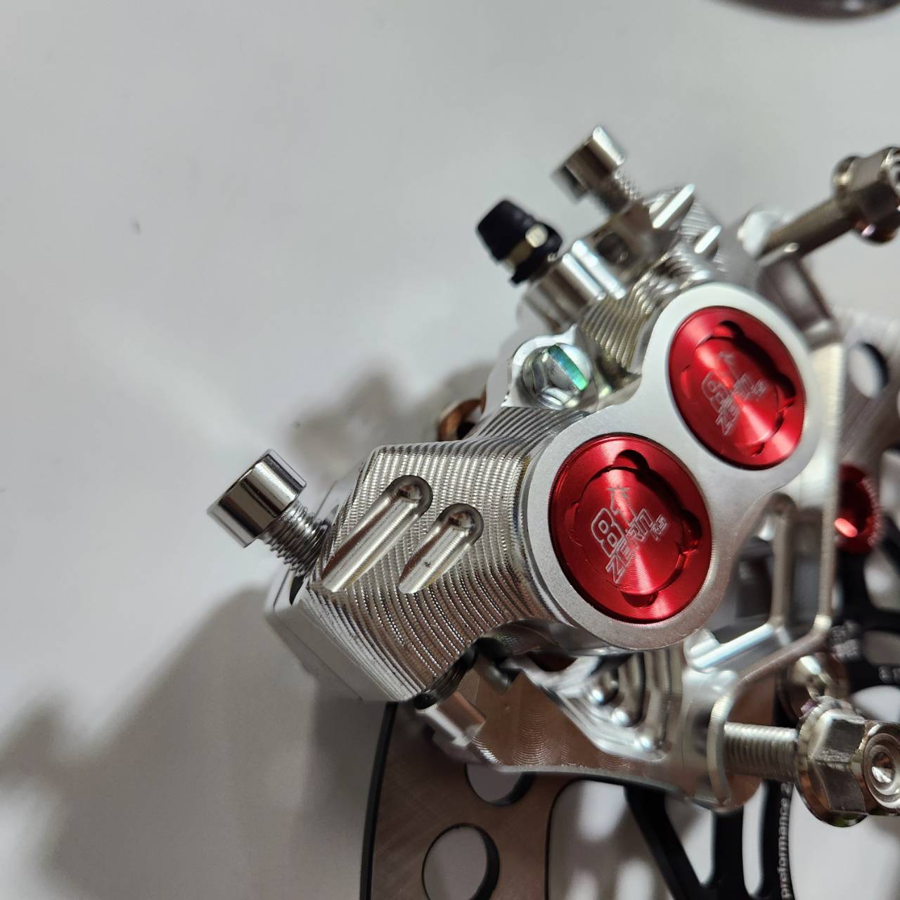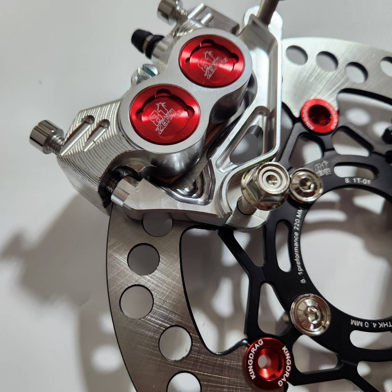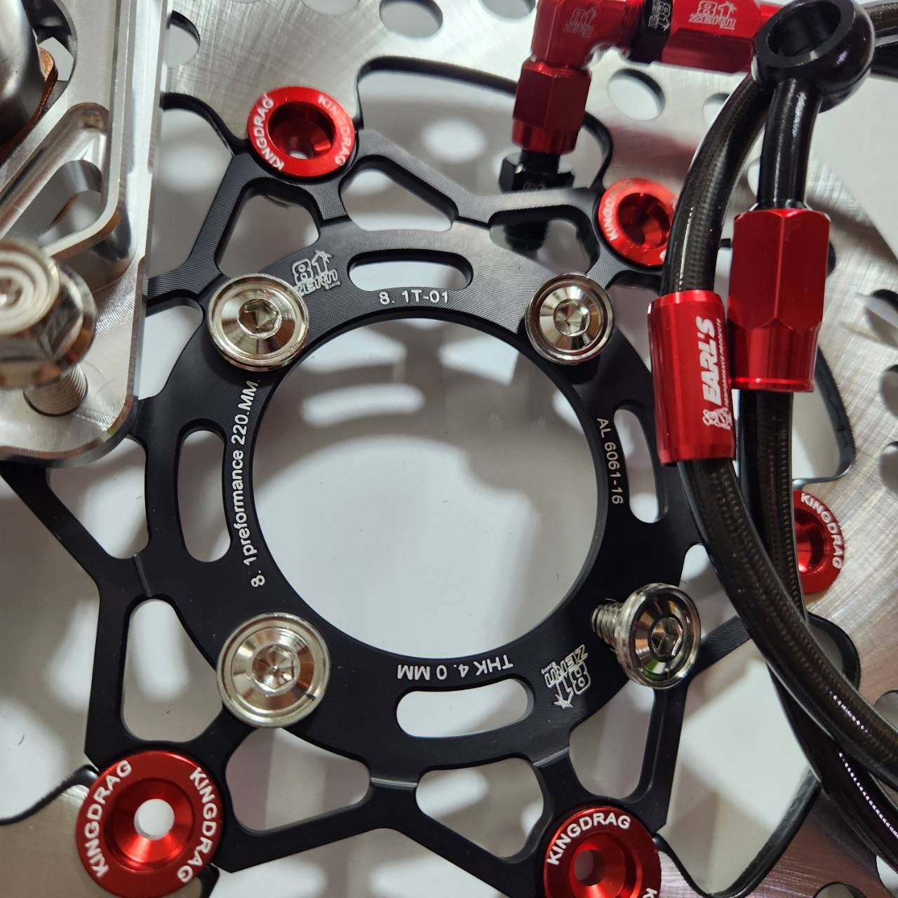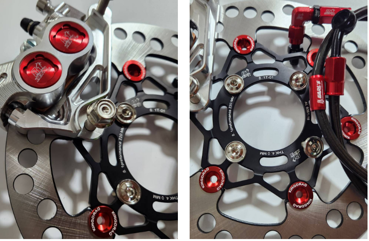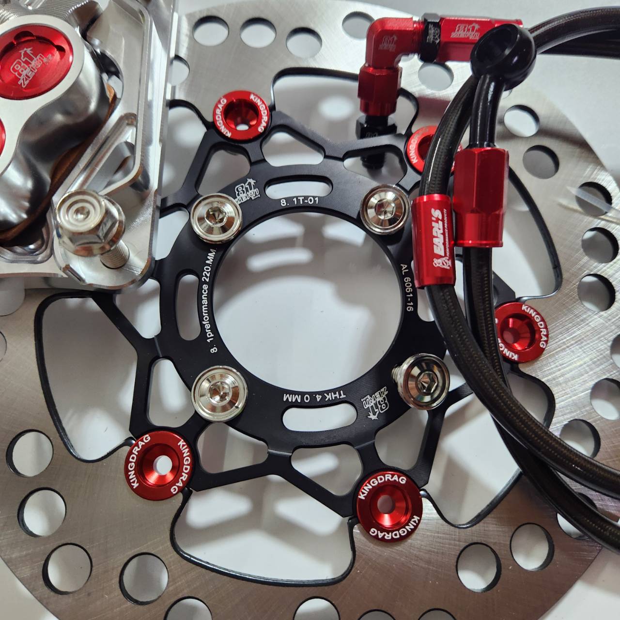 Bộ 5 mảnh, bơm tiền màu đỏ 8.1 thay thế CNC + chân bơm + đĩa đen màu đỏ + 8 ốc + dây phanh màu đỏ ZERN8.1 đầu 90 WAVE110i / WAVE125 cá voi / DREAM SUPERCUB.