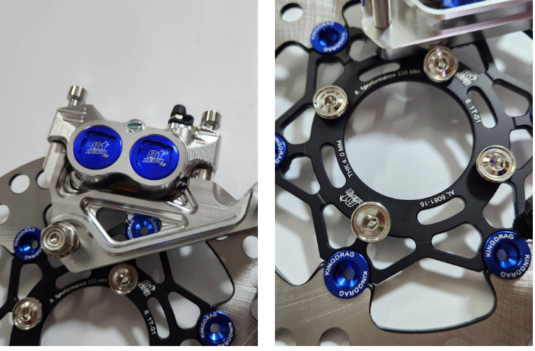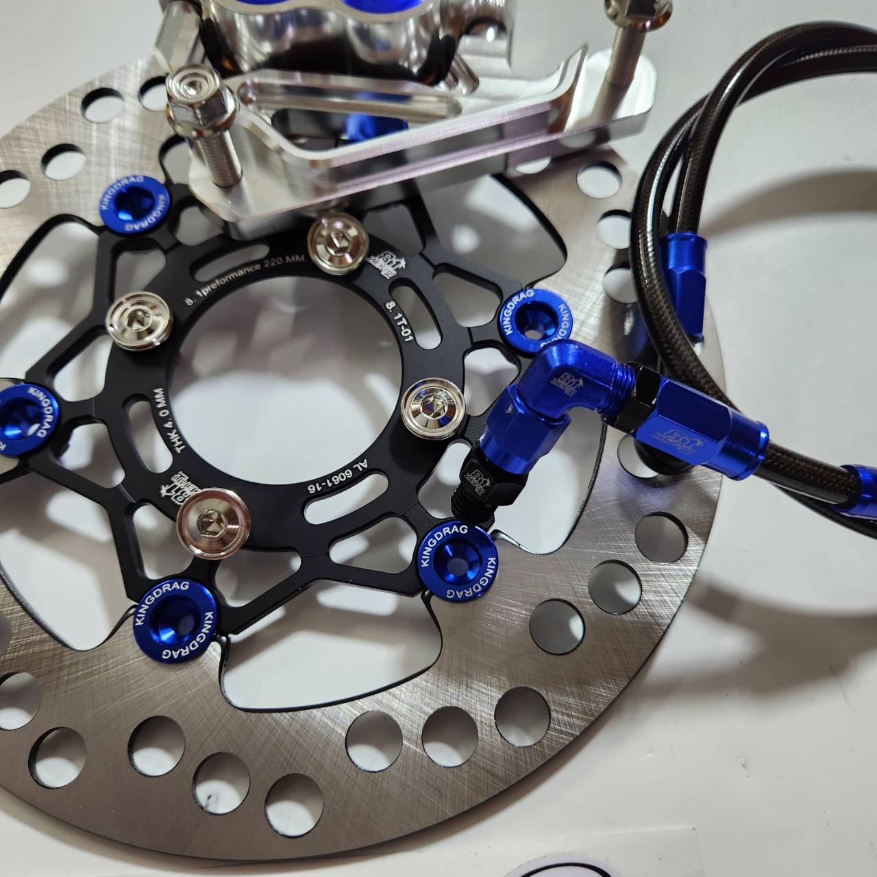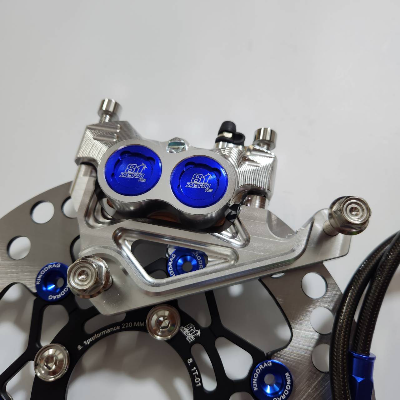 Bộ 5 mảnh, bơm tiền màu xanh nước 8.1 thay thế CNC + chân bơm + đĩa đen màu xanh nước + ốc 8 cái + dây phanh ZERN8.1 màu xanh nước đầu 90 WAVE110i / WAVE125 cá voi / DREAM SUPERCUB.