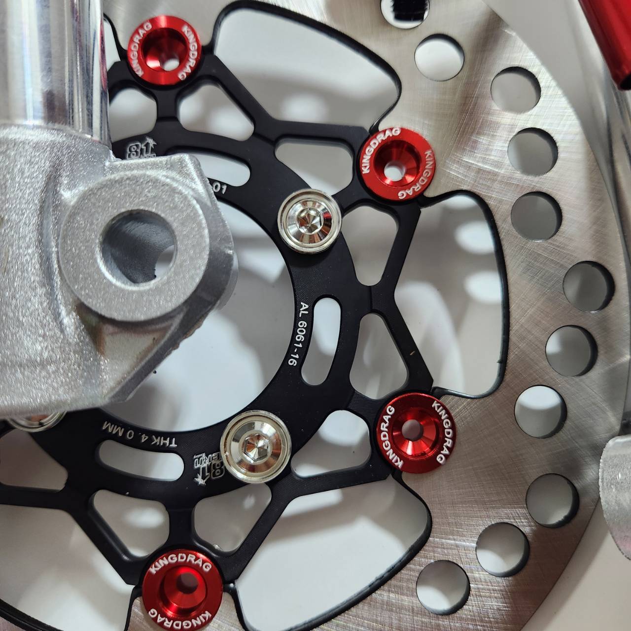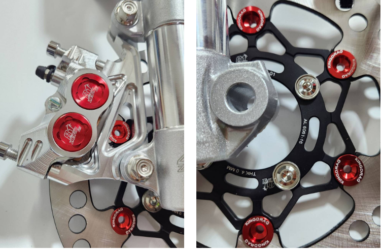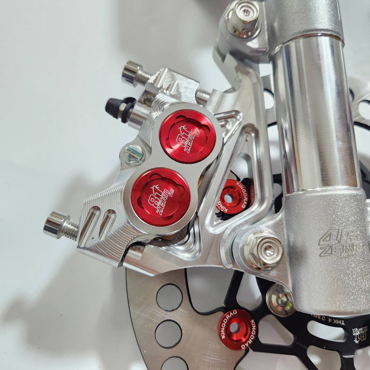 Bộ 6 mảnh: ống giảm xóc + trục cắt 2.5 inch màu bạc + bơm màu bạc chấm đỏ 8.1 thay thế CNC + chân bơm + đĩa đen chấm đỏ + ốc 8 chiếc + dây phanh màu đỏ ZERN8.1 đầu 90 WAVE110i / WAVE125 cá voi / DREAM SUPERCUB.