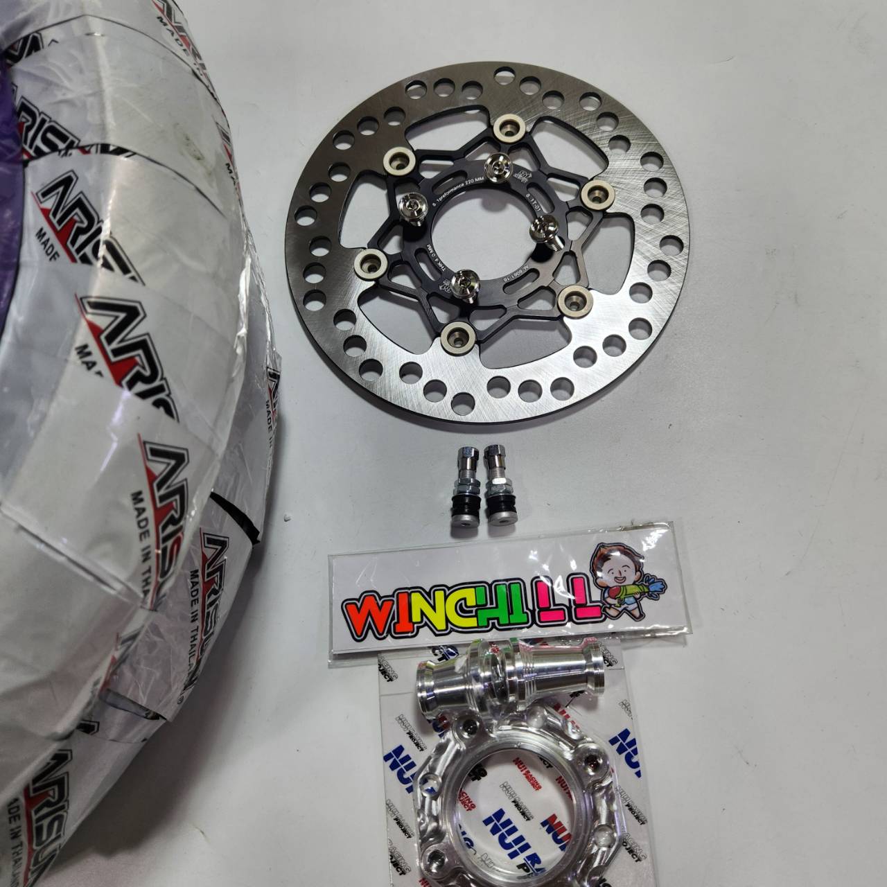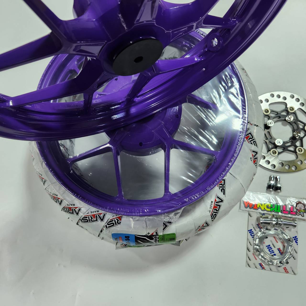 Bộ 6 mảnh, vỏ mâm CLICK125i màu tím + đĩa phanh màu đen bọc titan + bộ phận NUI + ốc vít đĩa phanh 4 chiếc + van hơi + lốp Pirelli 90/90-14 2 chiếc, phù hợp với PCX2017-2025.