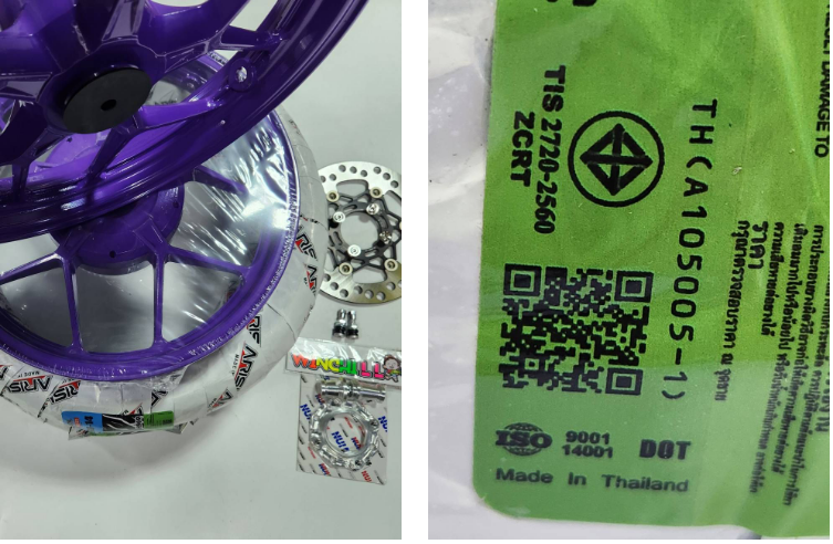 Sản phẩm "Bộ 6 mảnh, vỏ mâm CLICK125i màu tím + đĩa phanh màu đen bọc titan + bộ phận NUI + ốc vít đĩa phanh 4 chiếc + van hơi + lốp Pirelli 90/90-14 2 chiếc, phù hợp với PCX2017-2025." chính hãng được đặt trực tiếp từ "" Thái Lan, đảm bảo chất lượng và giá cả cạnh tranh.