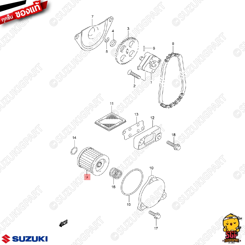 Sản phẩm "Bộ lọc dầu động cơ Suzuki Smash/Shooter/Best/Step/Hayate/Skydrive/GD110/Raider" chính hãng được đặt trực tiếp từ "suzukigpart" Thái Lan, đảm bảo chất lượng và giá cả cạnh tranh.