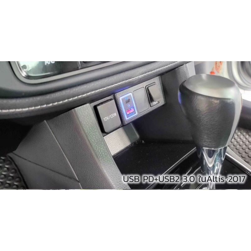 USB QC3.0+PD ช่องเสียบชาร์จ อุปกรณ์ในรถยนต์ รุ่นใหม่ เสียบชาร์จ iPhone ipad แบบ type-c ได้