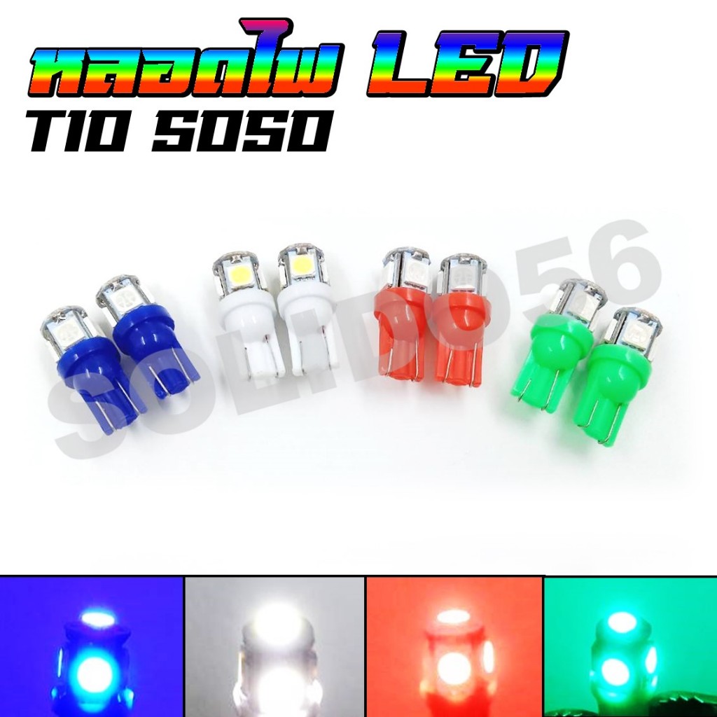 หลอดไฟ LED T10 12V รุ่น 5050 ไฟหรี่ ไฟไมล์ ไฟเลี้ยว ไฟส่องป้ายทะเบียน สำหรับรถมอเตอร์ไซต์และรถยนต์