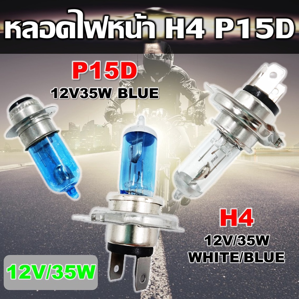 หลอดไฟหน้ามอเตอร์ไซต์รุ่น P15D เเละ H4 12V/35W หลอดไฟฮาโลเจน สีขาวนวล (ไม่มีสีฟ้า)
