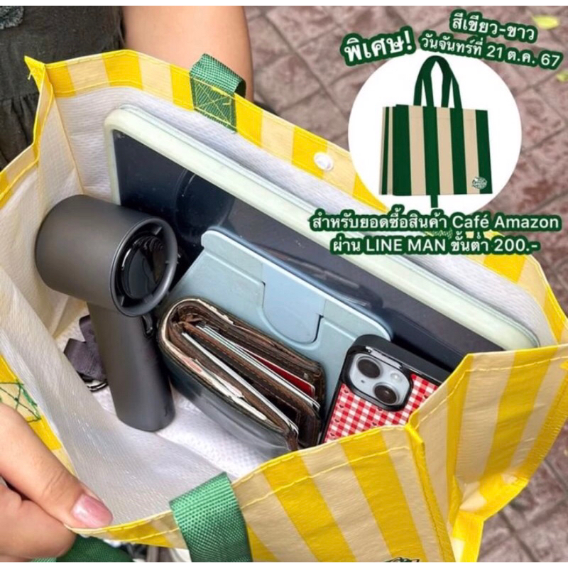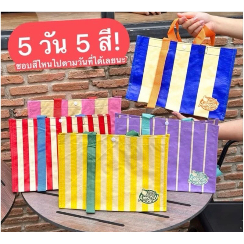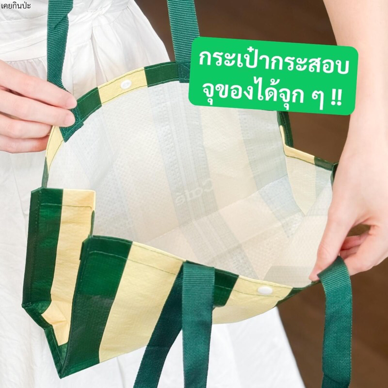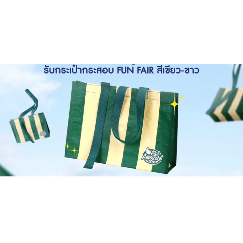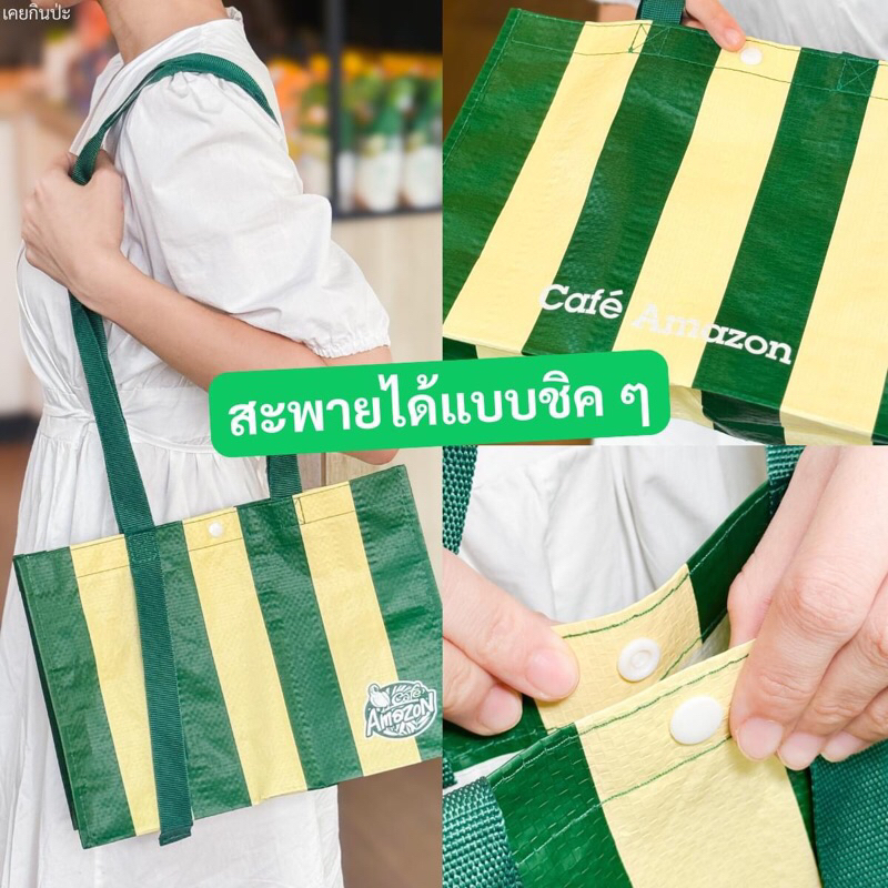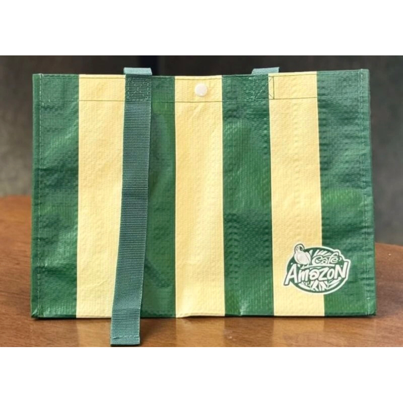 #สีพิเศษ Cafe Amazon คาเฟ่อเมซอน กระเป๋าผ้ากระสอบ สีเขียวครีม ทูโทน แท้💯%