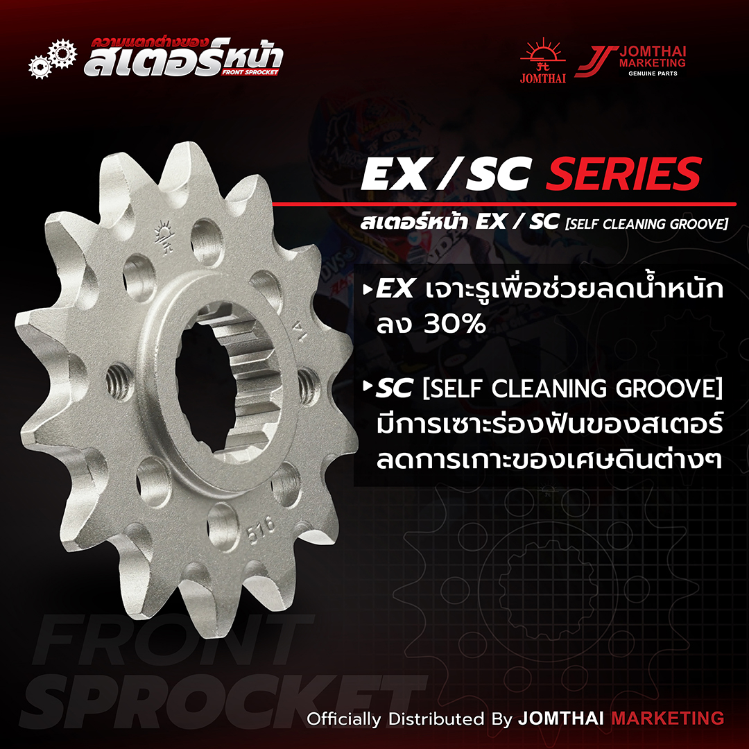 สเตอร์หน้าเหล็ก (EX) ผลิตจากเหล็กเพลา เกรด SCM420 นำเข้าจากประเทศญี่ปุ่น คุณสมบัติพิเศษ ทนแรงดึงสูง มีความเหนียว เพิ่มความแข็งแรงด้วยการชุบแข็งที่ผิวของสเตอร์