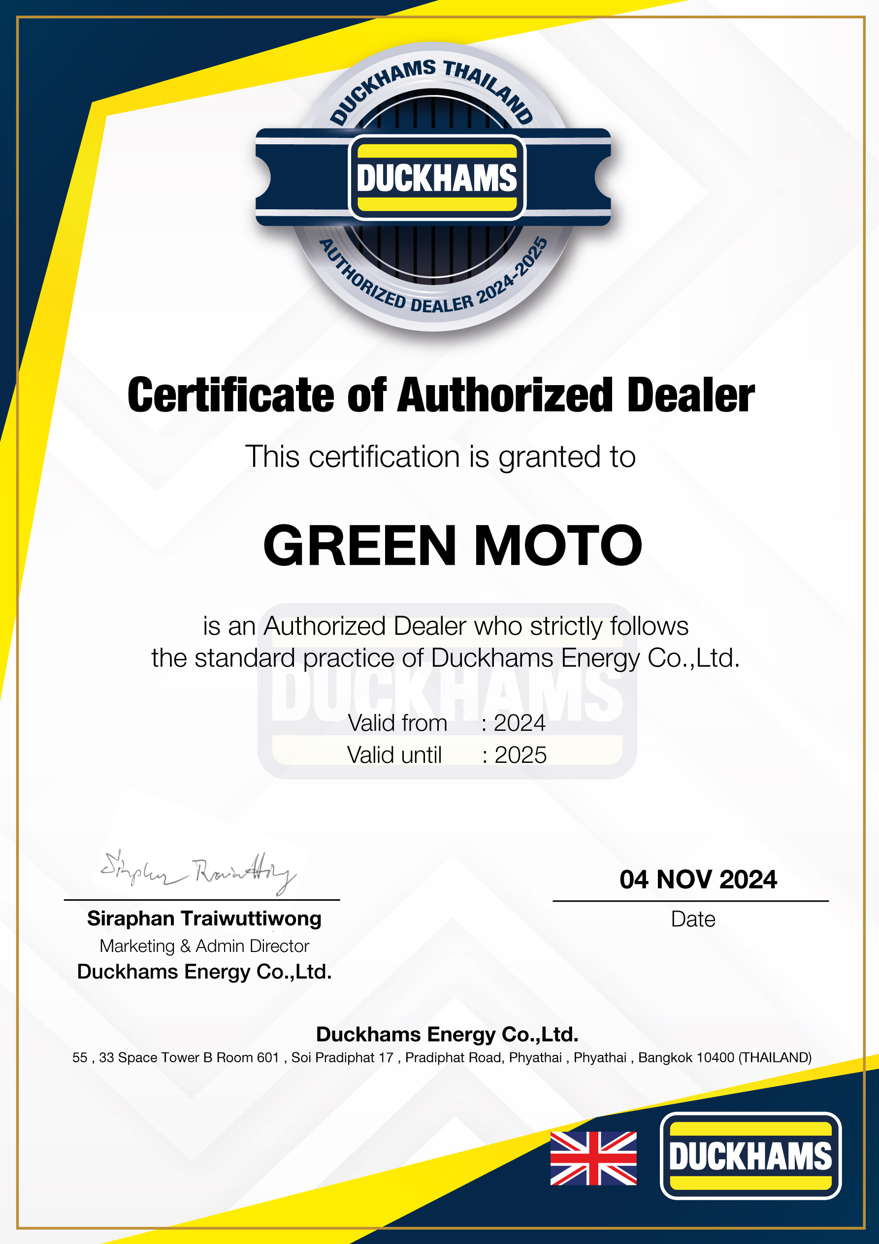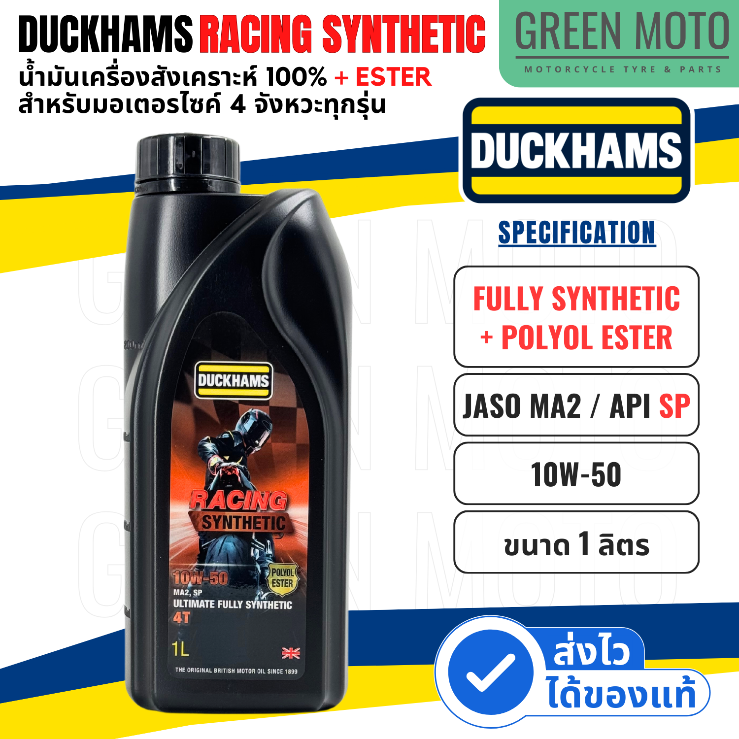 Sản phẩm "Dầu động cơ DUCKHAMS RACING Synthetic 10W-40 / 10W-50 kết hợp Polyol ESTER, nhóm 5, tiêu chuẩn cao nhất API SP, chai màu đen." chính hãng được đặt trực tiếp từ "" Thái Lan, đảm bảo chất lượng và giá cả cạnh tranh.