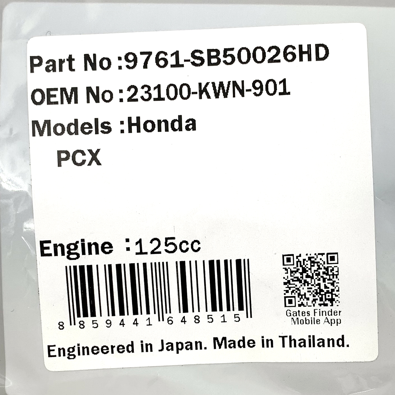 Dây curoa truyền động Gates Power Link SB50026HD được sử dụng thay thế cho dây curoa Honda 23100-KWN-901 cho PCX125 (2009).