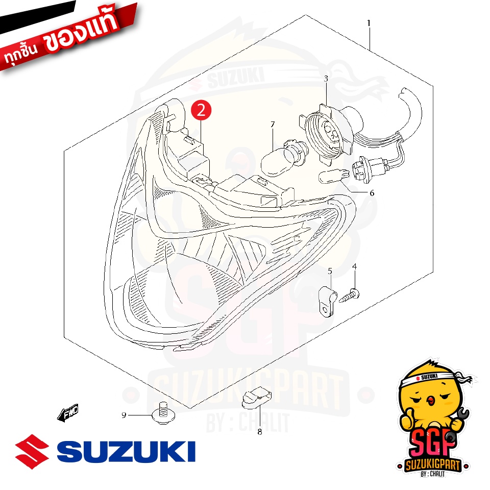 Sản phẩm "Đèn lắp ráp đèn pha đơn vị tấm máy chiếu Assy, Đèn Pha Suzuki NEX 110 chính hãng" chính hãng được đặt trực tiếp từ "suzukigpart" Thái Lan, đảm bảo chất lượng và giá cả cạnh tranh.