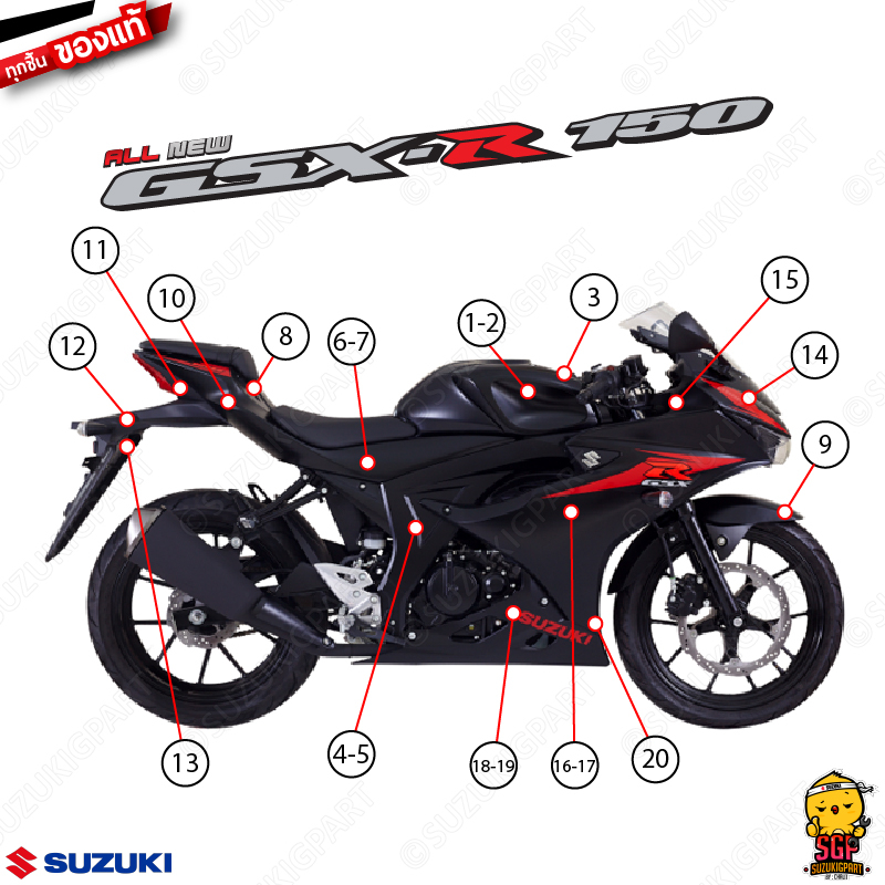 Sản phẩm "GSX-R150 Suzuki 2017 màu đen" chính hãng được đặt trực tiếp từ "suzukigpart" Thái Lan, đảm bảo chất lượng và giá cả cạnh tranh.