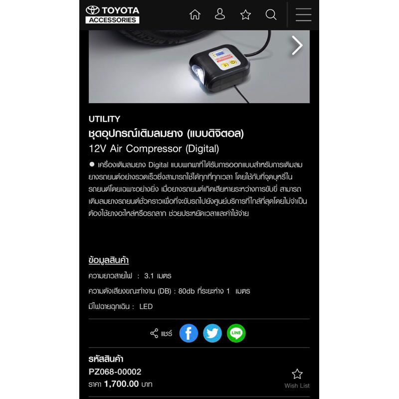ชุดปั๊มเติมลมยางดิจิตอล ของแท้ศูนย์ TOYOTA อุปกรณ์เสริมที่ควรมีติดรถไว้ใช้ในยามฉุกเฉิน กรณียางรั่ว/แบน