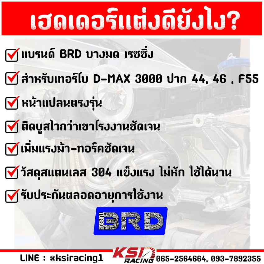 เฮดเดอร์ เหล็ก สแตนเลส BRD บางมด เทอร์โบ แต่ง ซิ่ง ดีเซล ดีแมก 3000 F55 TRITON , PAJERO , NEW TRITON 2.5 ไทรทัน , ปาเจโร่ 05-16 , นิว ไตตัน ตัวเตี้ย 16-22