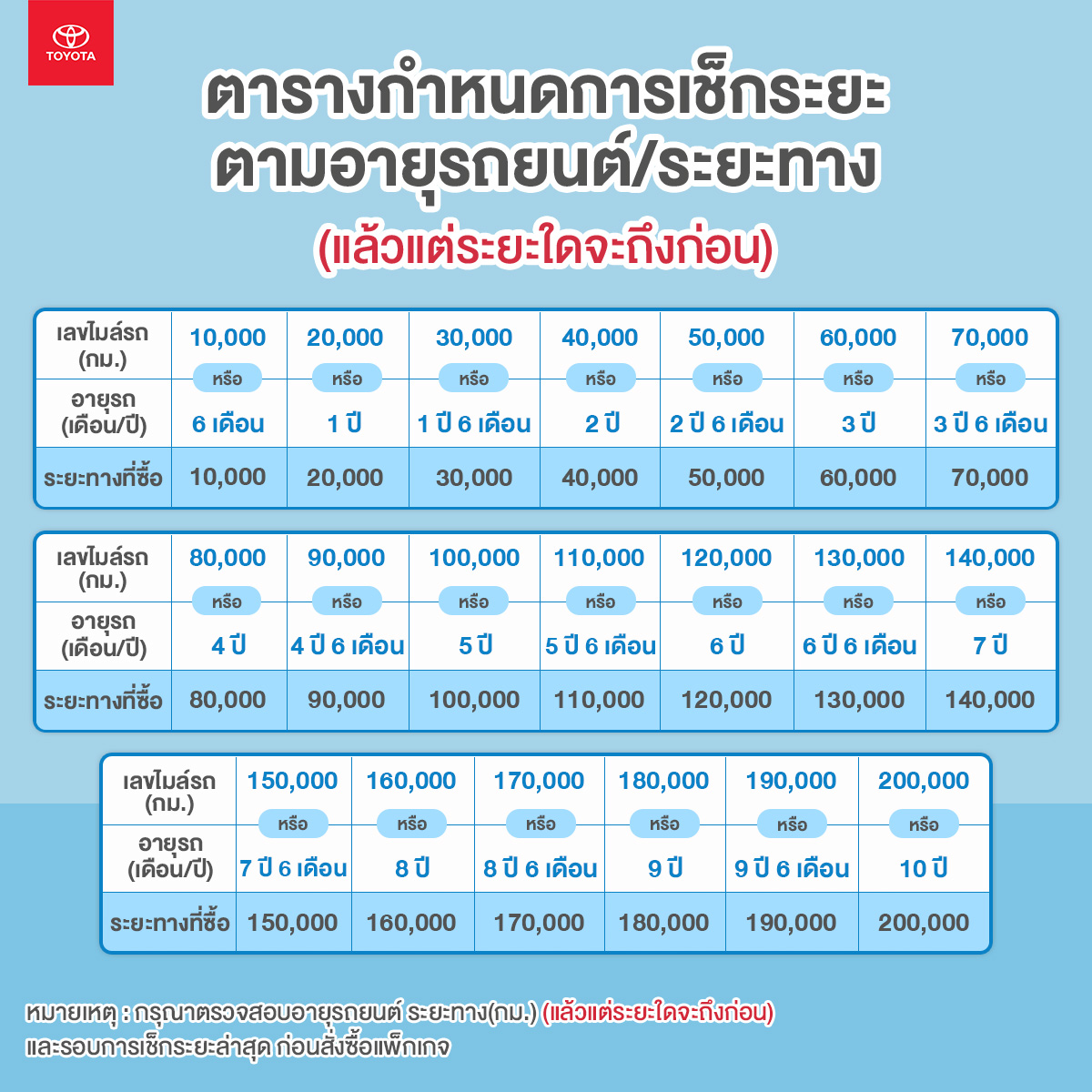 6.ตรวจสอบรายการอะไหล่ตามระยะทางได้ที่ https://aftersales.toyota.co.th/maintenance