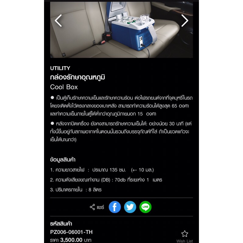● เป็นตู้เก็บรักษาความเย็น และรักษาความร้อน ต่อไฟรถยนต์จากที่จุดบุหรี่ในรถ โดยจะติดตั้งไว้ตรงกลางของเบาะหลัง สามารถทำความร้อนได้สูงสุด 65 องศา และทำความเย็นภายในตู้ได้ต่ำกว่าอุณภูมิภายนอก 15 องศา