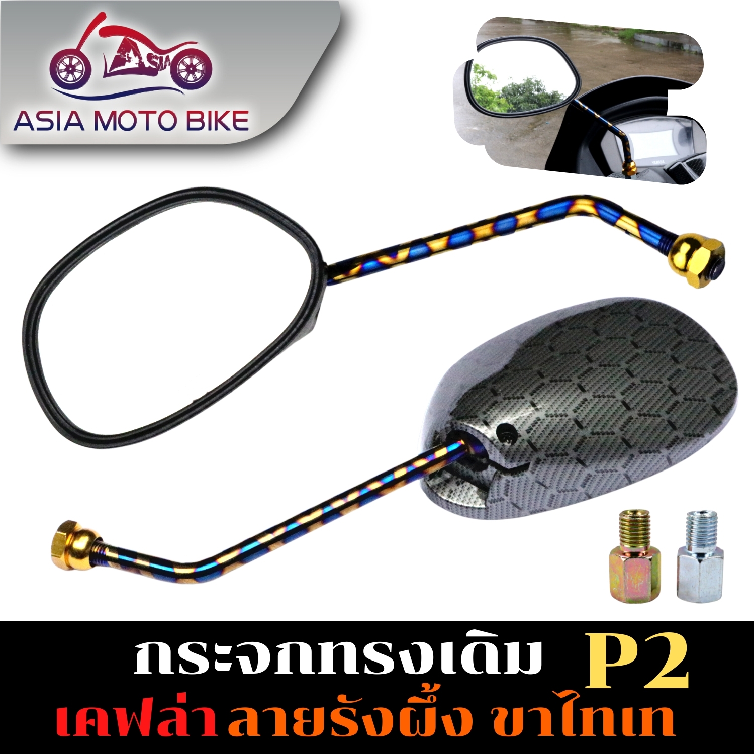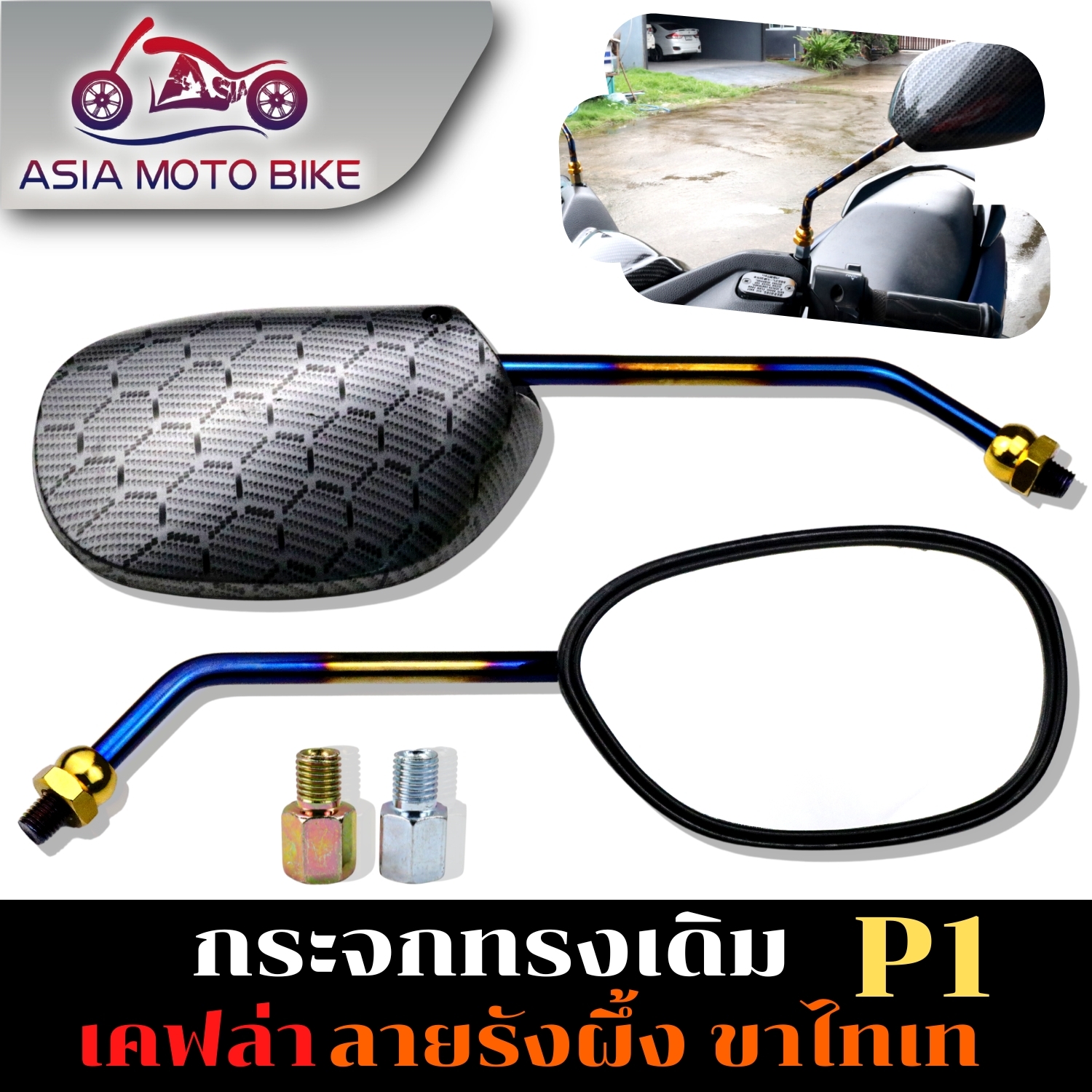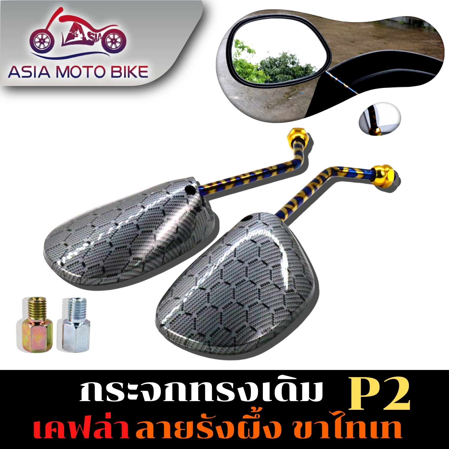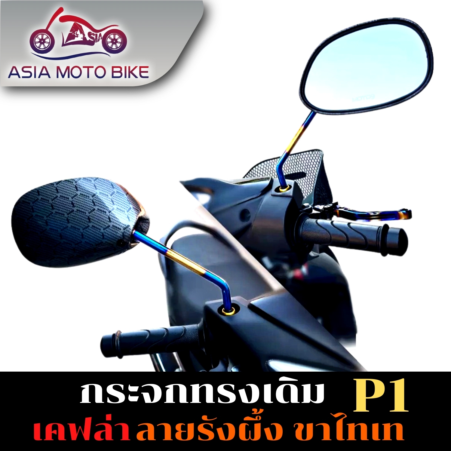 กระจกทรงเดิมเคฟล่าลายรังผึ้ง-ขาไทเท (1คู่)