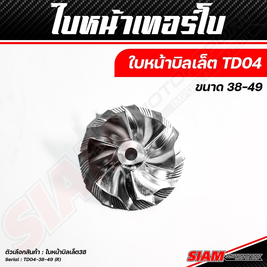 – ใบหน้าบิลเล็ต เทอร์โบTD04 ขนาด 38 มิล 6 ใบ แกน 5 มิล