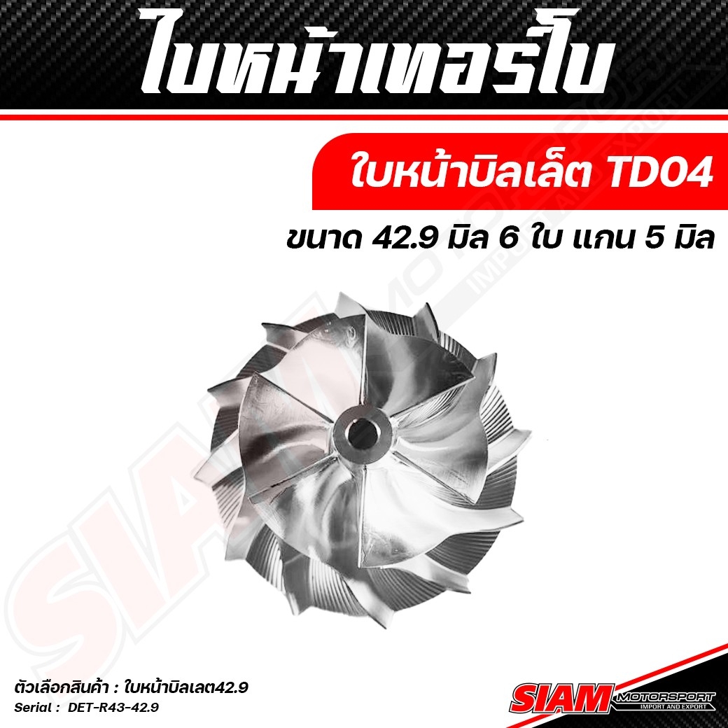 – ใบหน้าบิลเลต เทอร์โบTD04 ขนาด 42.9 มิล 6 ใบ แกน 5 มิล