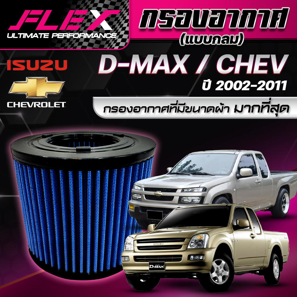 – กรองอากาศ FLEX (แบบกลม) ISUZU D-MAX เก่า คอมมอนเรล ปี 2002-2011 / CHEVROLET COLORADO ปี 2004-2011