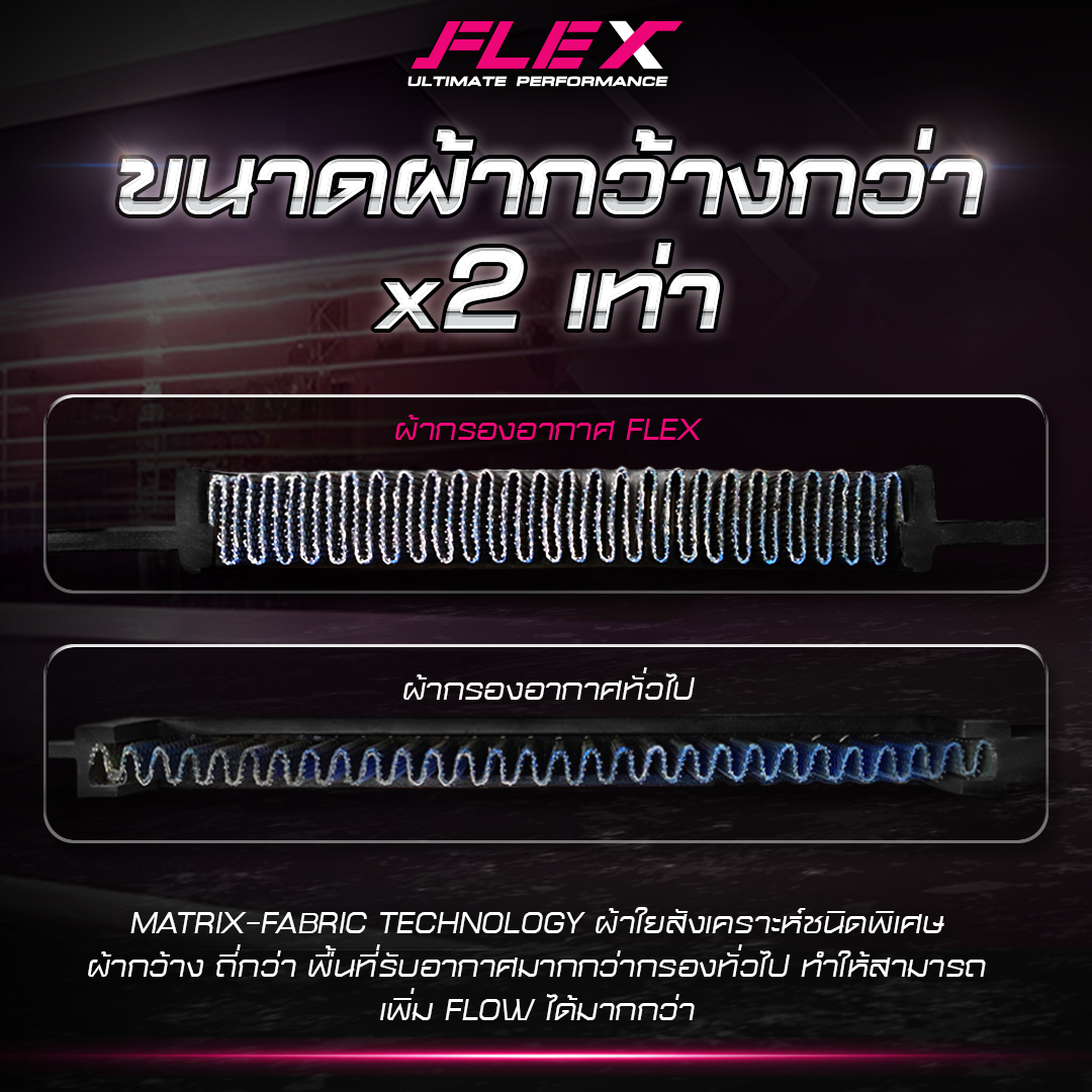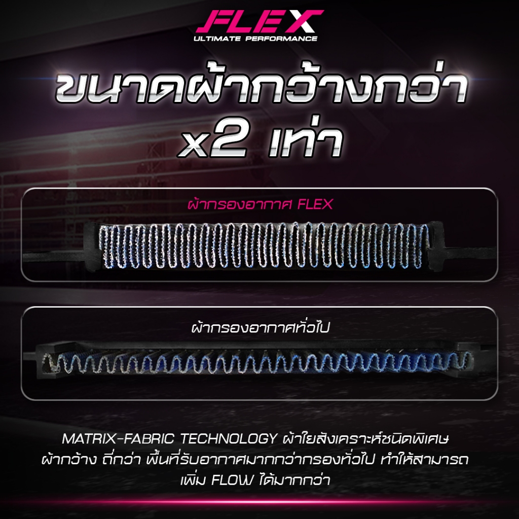 11. กรอง FLEX ยังมีพื้นที่ของผ้าสังเคราะห์ที่ขนาดกว้างกว่าปกติทั่วไปถึง 2 เท่า เพิ่มอัตราการไหลของอากาศได้มากกว่า