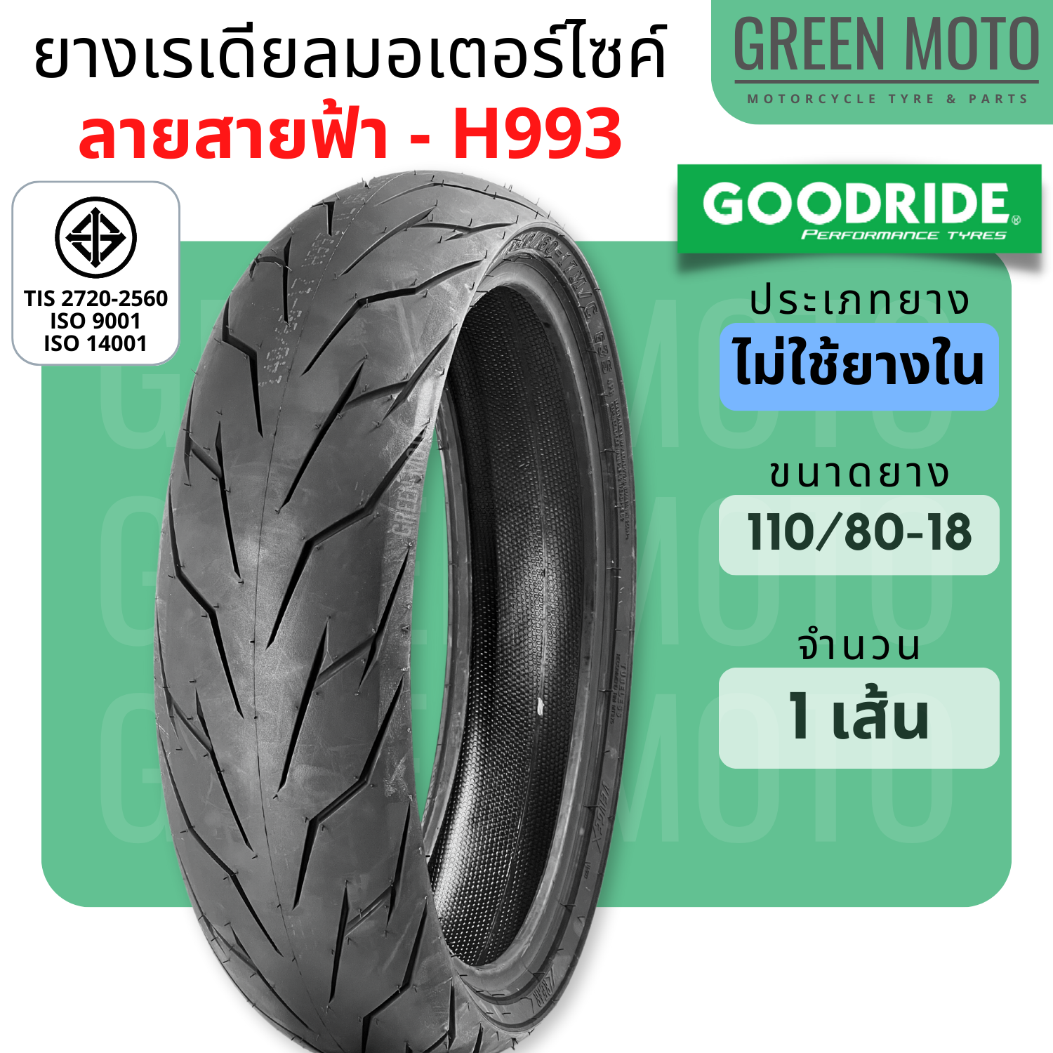 #GREEN-Motorbike #ยางเรเดียลมอเตอร์ไซค์ #GOODRIDE #กู้ดไรด์ #H993-ลายสายฟ้า #T/L-(Tubeless) #ขอบ-17,18-นิ้ว