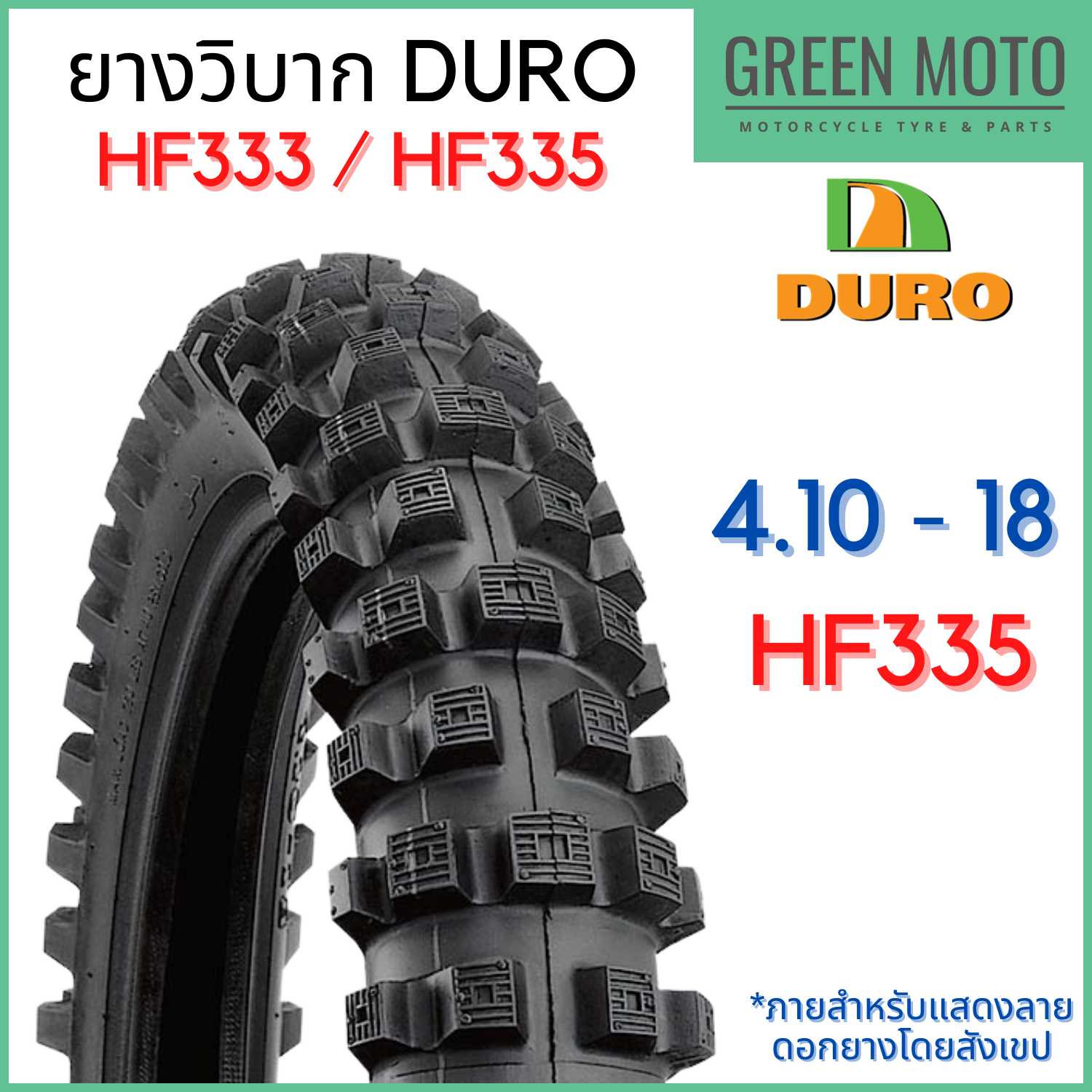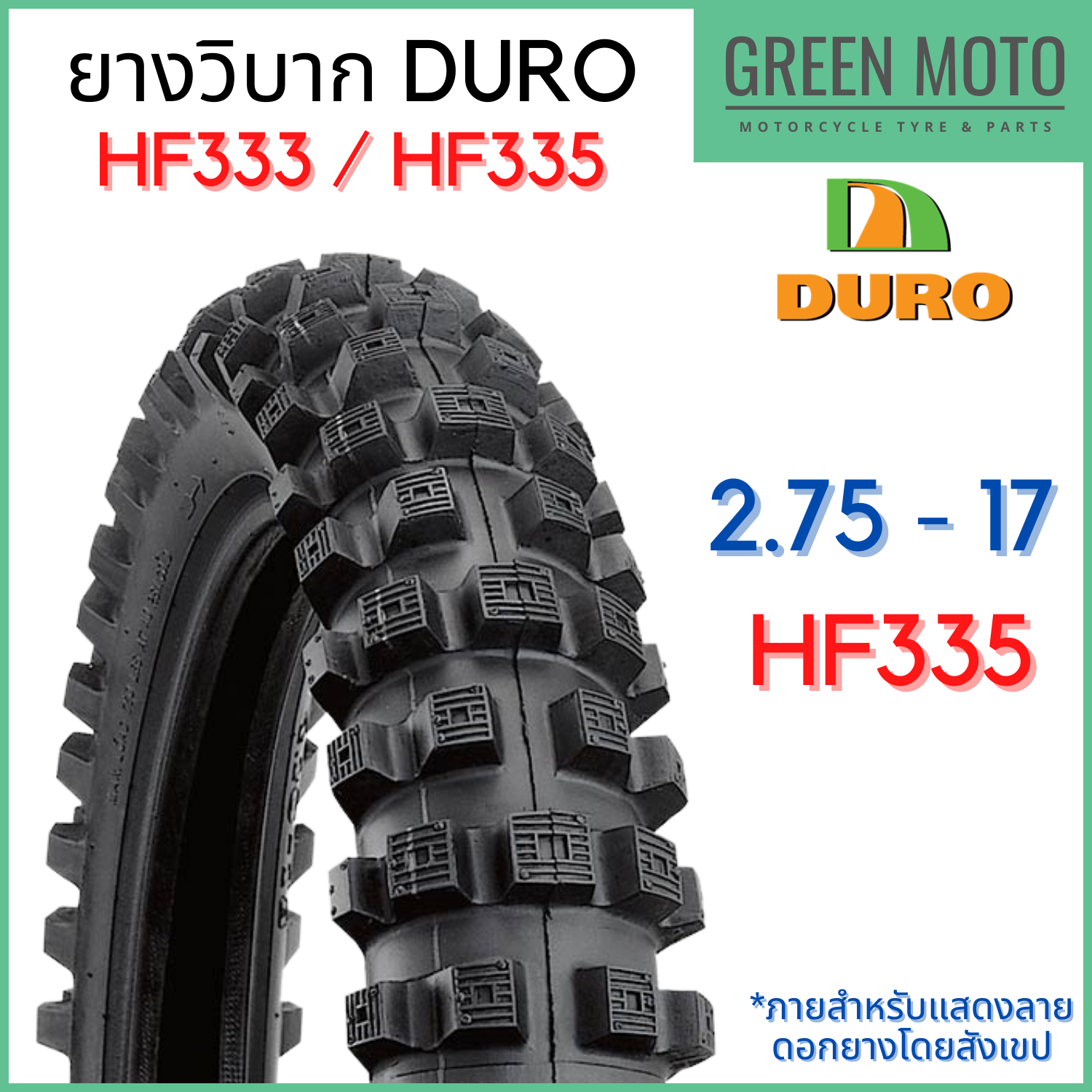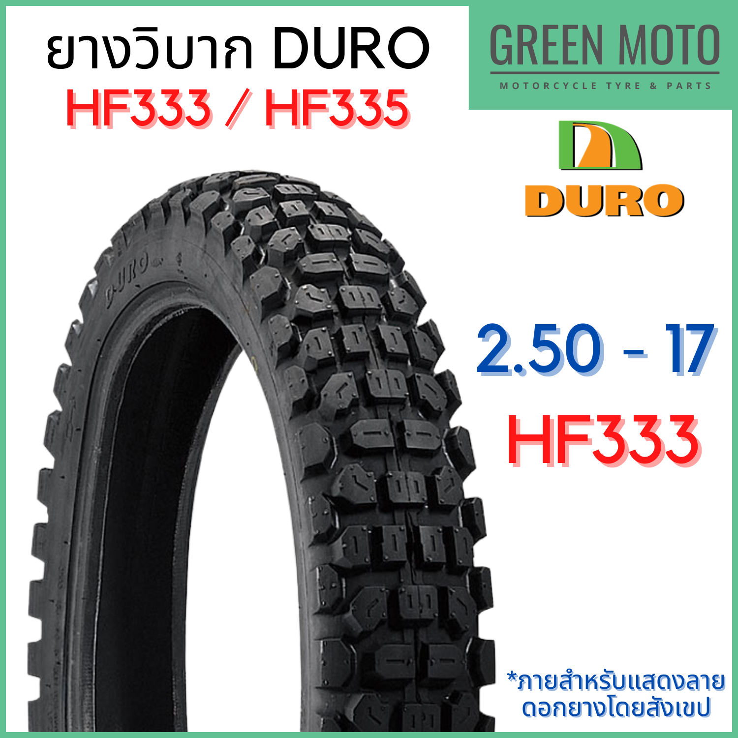 Lốp ngoài xe máy DURO HF333/HF335 với mẫu vẽ T/T (Loại ống) kích thước 17, 18, 21 inch.
