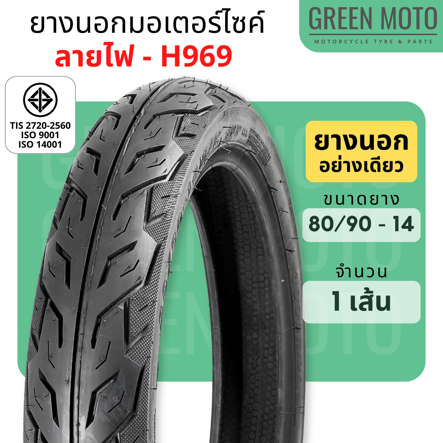 #GREEN-Motorbike #ยางนอกมอเตอร์ไซค์ #GOODRIDE #กู้ดไรด์ #H969-ลายไฟ #T/T-(Tube-Type) #ขอบ-14-นิ้ว