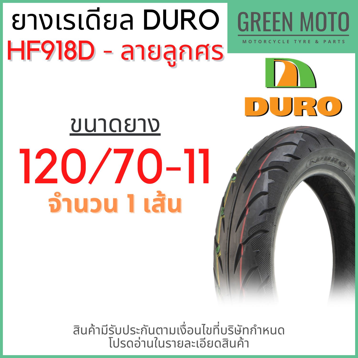 #GREEN-Motorbike #ยางเรเดียลมอเตอร์ไซค์ #DURO #ดูโร่ #HF918-ลายลูกศร #T/L-(Tubeless) #ขอบ-10-12-นิ้ว