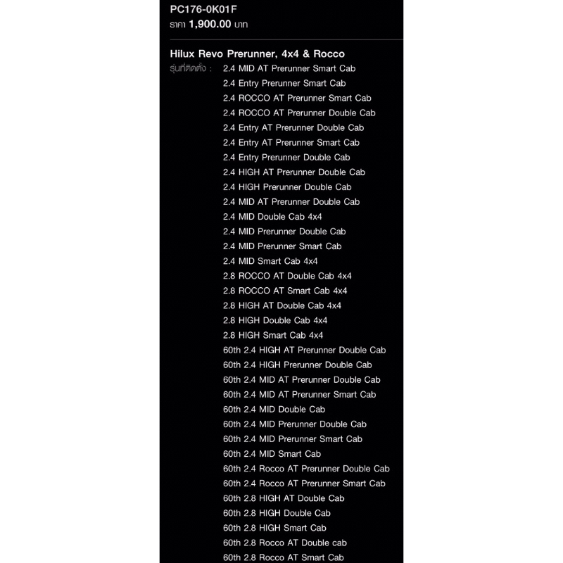 Mã sản phẩm chính hãng bảo vệ cổng đuôi PC176-0K01F trung tâm, Revo praunner, 4×4 & Rocco, z-edition
