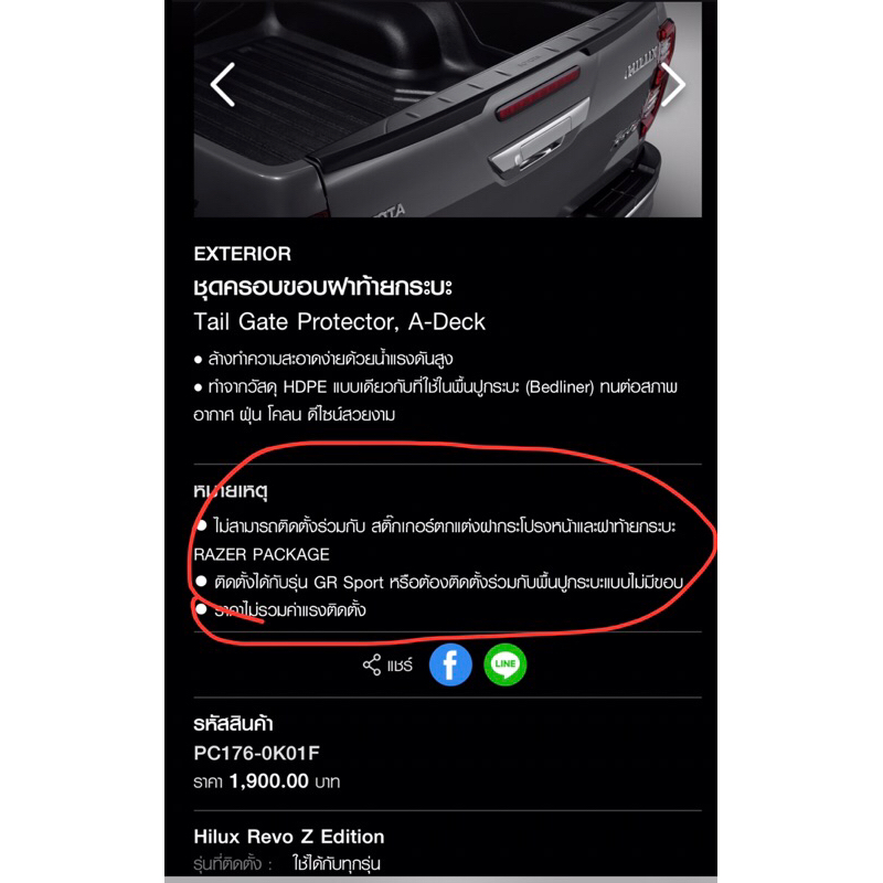 ● ไม่สามารถติดตั้งร่วมกับ สติ๊กเกอร์ตกแต่งฝากระโปรงหน้าและฝาท้ายกระบะ RAZER PACKAGE
