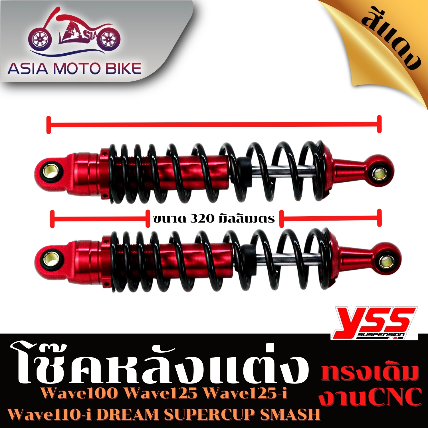 NEW!!!โช๊คหลังแต่งรุ่น Wave125/Wave110-i,Dream,Sonic (YSS)ขนาด 320mm. 1คู่ (V2)