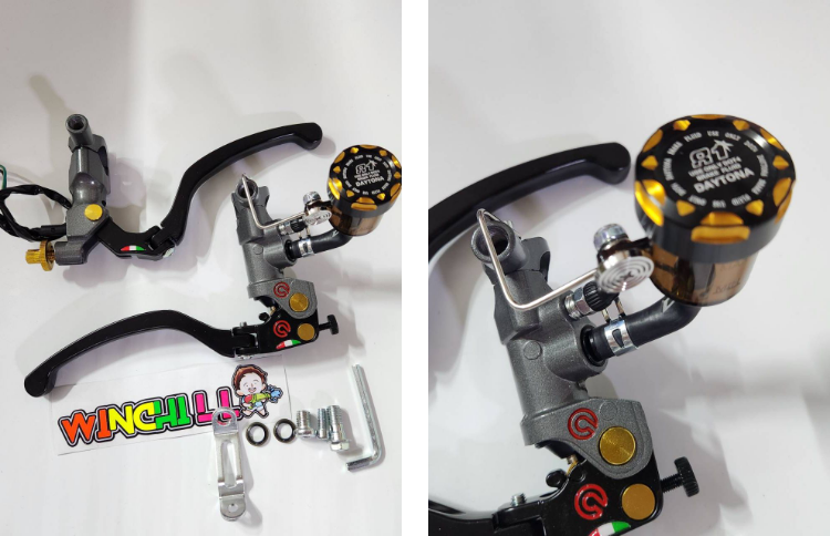 Một cặp bơm ARS G. Trắng + chân thép không gỉ + inox + nắp DAY8.1 màu đồng cho WAVE / PCX / MSLAZ / X1 / DASH / LS / TENA / NOVA-RS / NOUVO-MX / MIO.