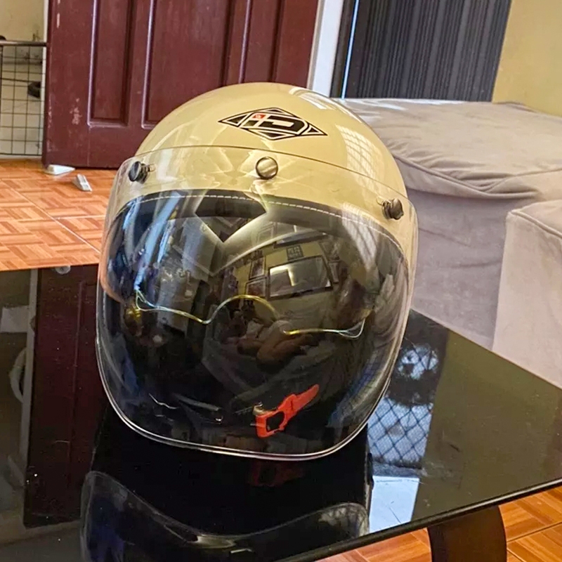 MUTAKIN Mũ Mặt nạ 3 nút bấm nhiều màu cổ điển màu đen Mũ bảo hiểm cổ điển tấm che bong bóng