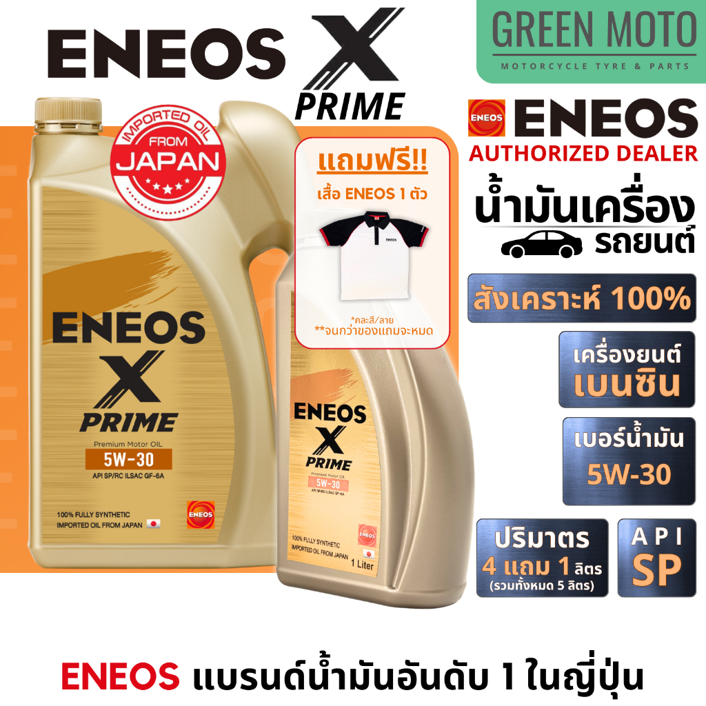 #GREENMOTO #ENEOS #ENEOSXPRIME #เอเนออส #XPRIME #น้ำมันเครื่อง #น้ำมันเครื่องรถยนต์ #สังเคราะห์แท้ #FullySynthetic #ImportedFromJapan #MadeInJapan #นำเข้าจากญี่ปุ่น #APISP #0W20 #5W30 #5W40 #รถญี่ปุ่น #รถไฮบริด #รถยุโรป #แถมเสื้อ
