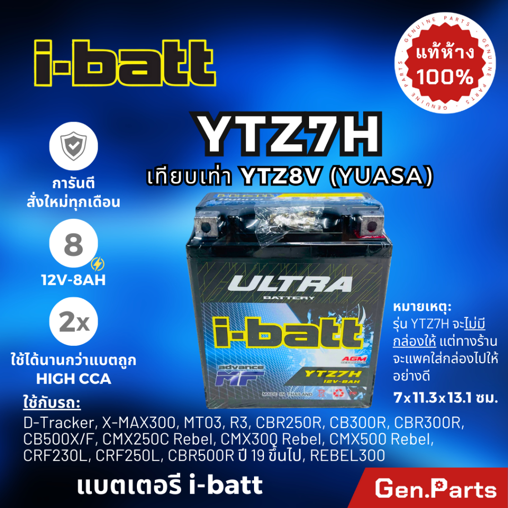 Sản phẩm "Pin Xe Máy ibatt ytz8v 8A cbr250/300 d-tracker klx140/150/250 REBEL i-batt ytz7h 12v-8ah" chính hãng được đặt trực tiếp từ "" Thái Lan, đảm bảo chất lượng và giá cả cạnh tranh.