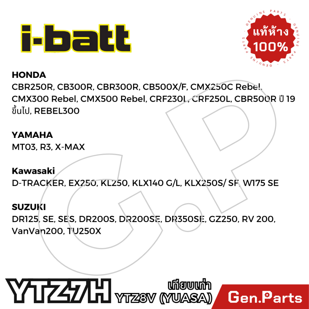 รุ่น: GTZ7H 12V-8AH เท่า YTZ8V