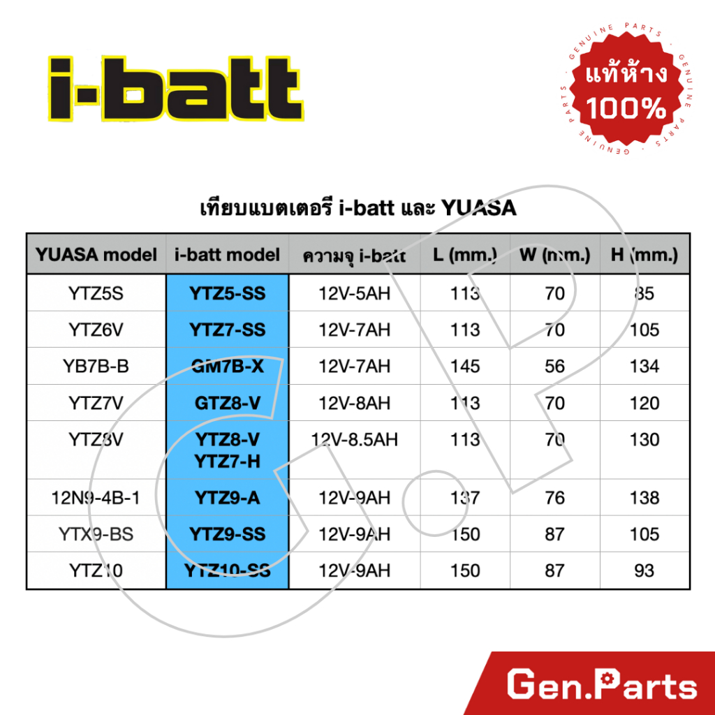 – แบตเตอรี่เทียบเท่า YUASA YTZ8V