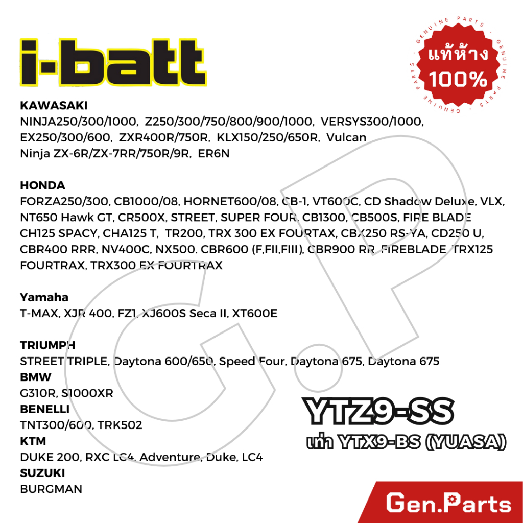 – แบตเตอรี่เทียบเท่า YUASA YTX9-BS