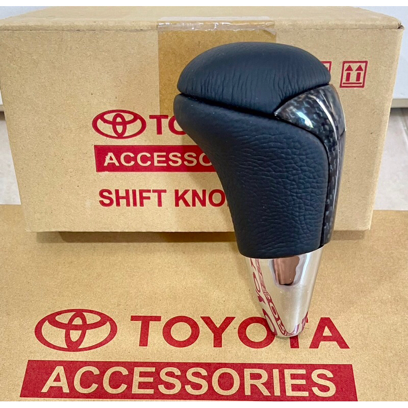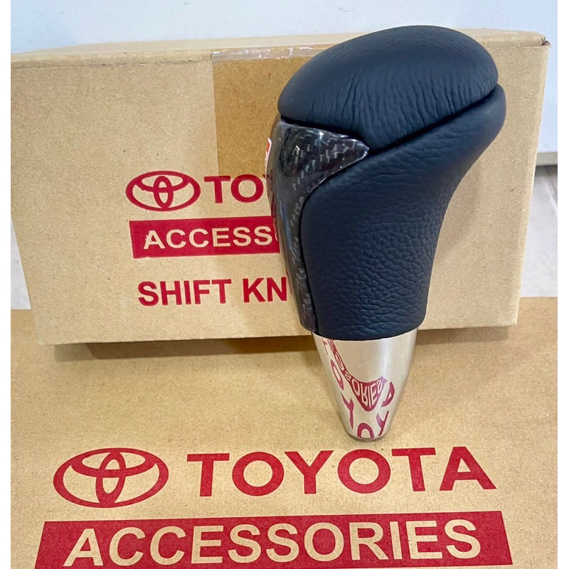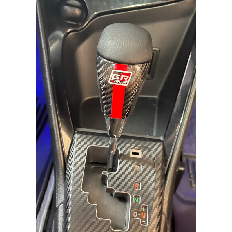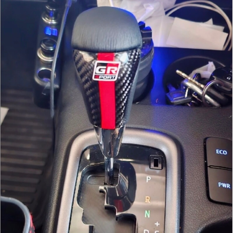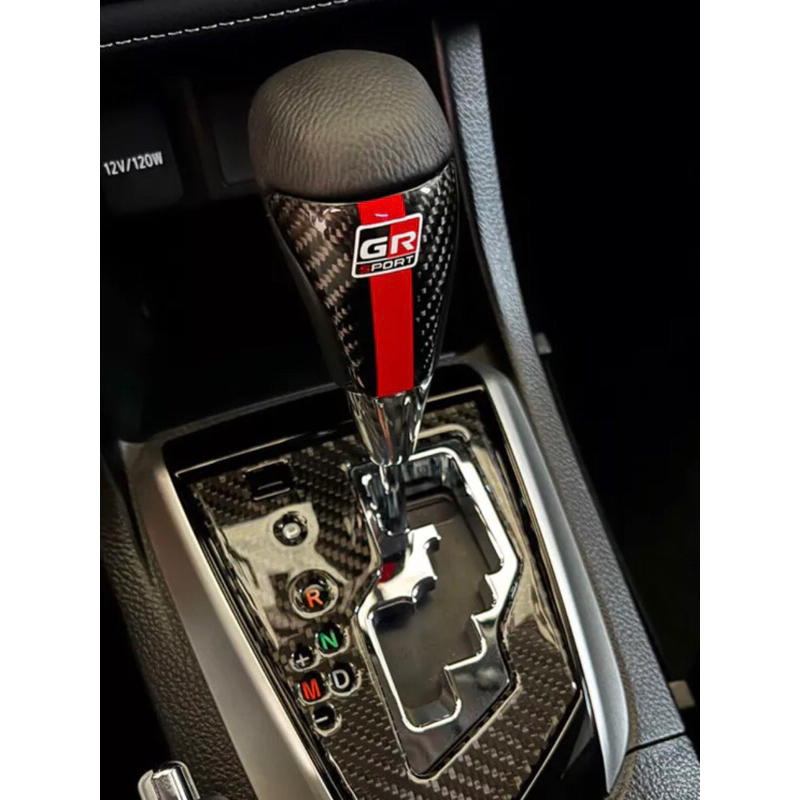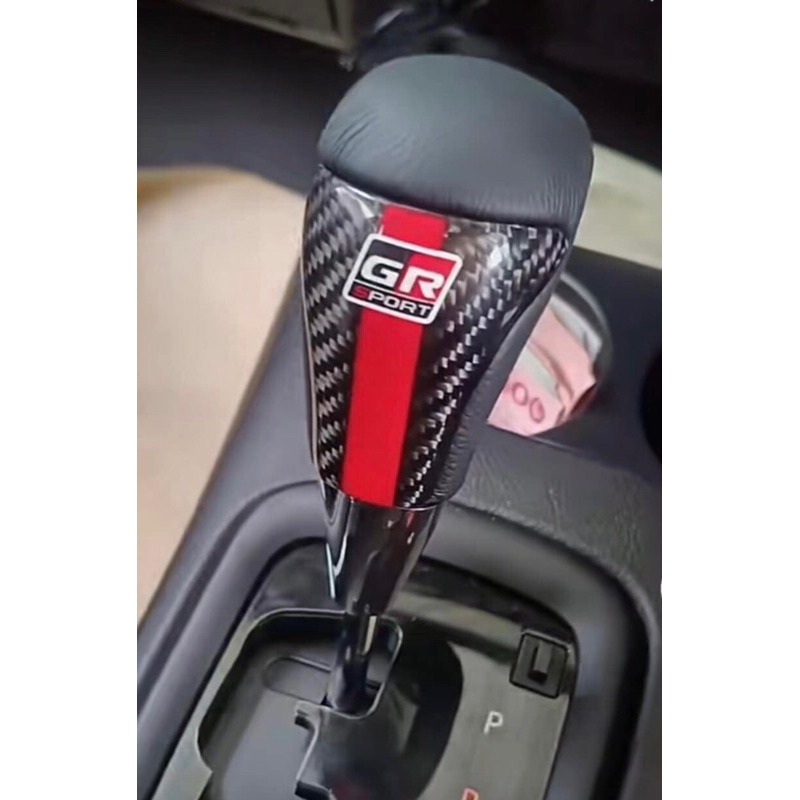 ✅ หัวเกียร์ออโต้ TOYOTA เคฟล่าแท้ โลโก้ GR คาดเส้นแดงแบบสปอร์ต รูปทรงใหม่ จับถนัดมือ เท่ สปอร์ต หนังดำ ปลายโคเมี่ยม