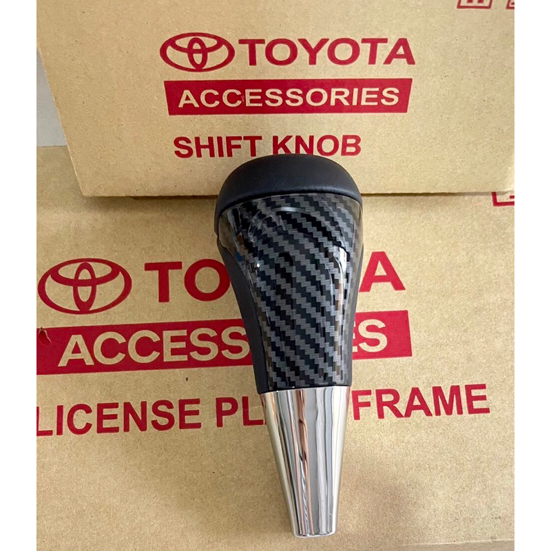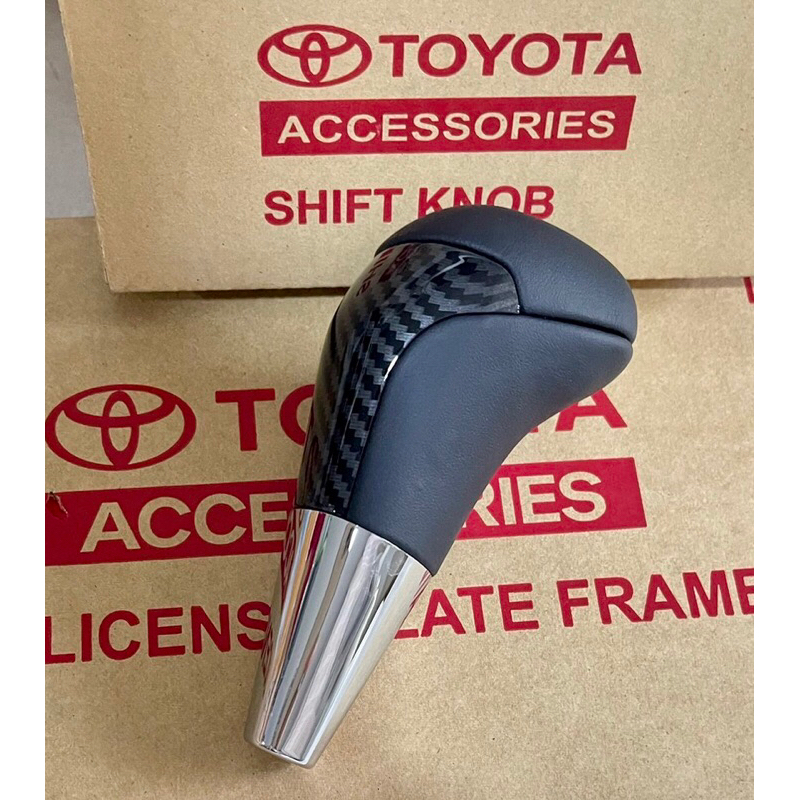 ✅ หัวเกียร์ออโต้ TOYOTA ลายเคฟล่า เงางามหนังดำ ปลายโคเมี่ยม หรูหรา เท่ สปอร์ต