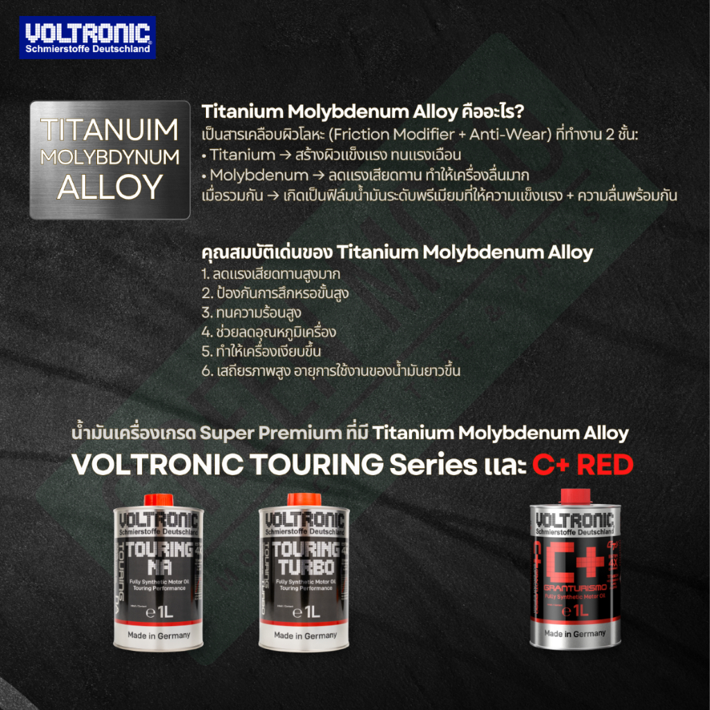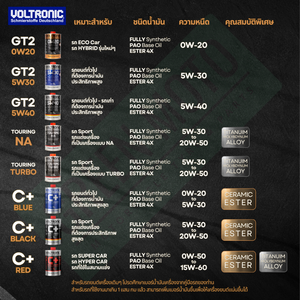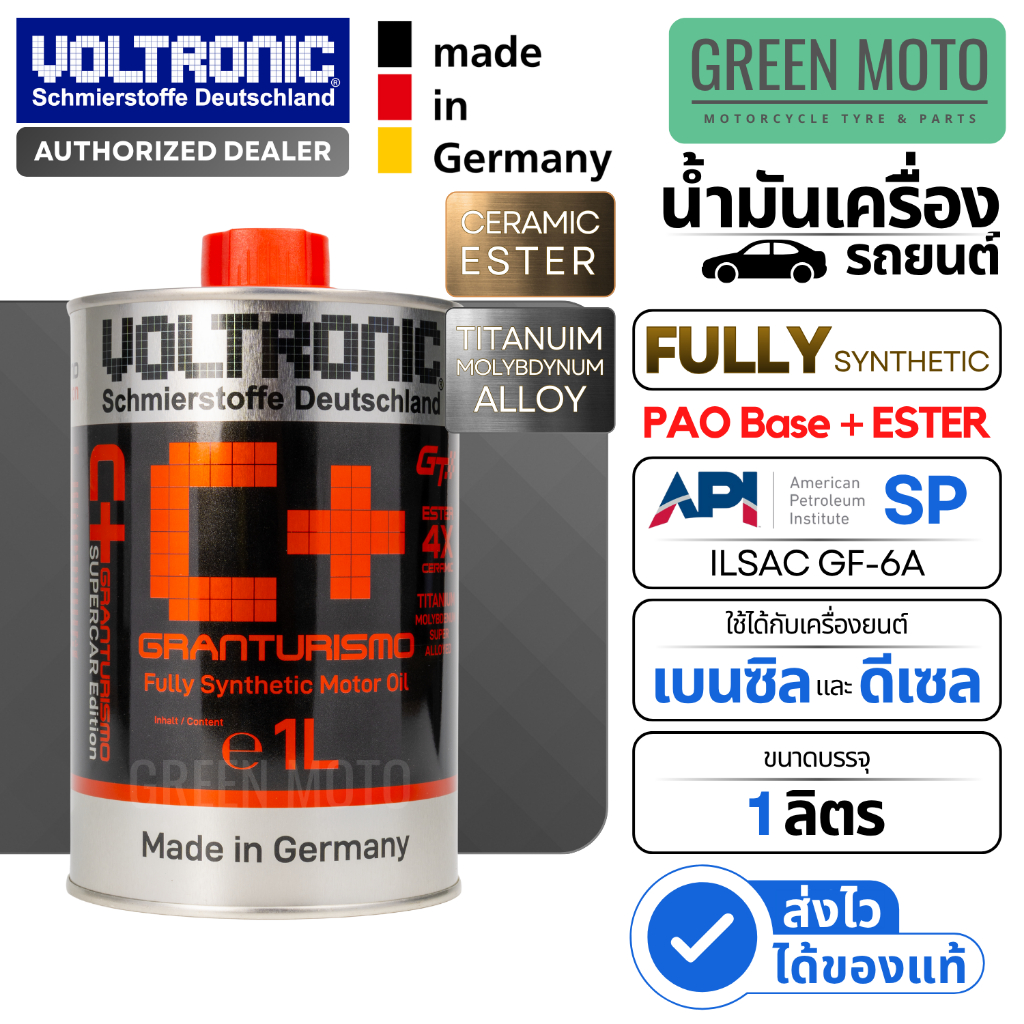 #GREENMOTO #Voltronic #VoltronicCPlus #CSeries #GranTurismo #น้ำมันเครื่อง #น้ำมันเครื่องรถยนต์ #น้ำมันเครื่องสังเคราะห์แท้ #MadeinGermany #PAO #Ester #4Xester #Ceramic #CeramicEster #เซรามิก #โบรอนไนไตรด์ #APISP #ILSACGF7A #LSPI #GDI #Turbo #น้ำมันเครื่องเยอรมัน #Supercar #รถซิ่ง #อะไหล่รถยนต์