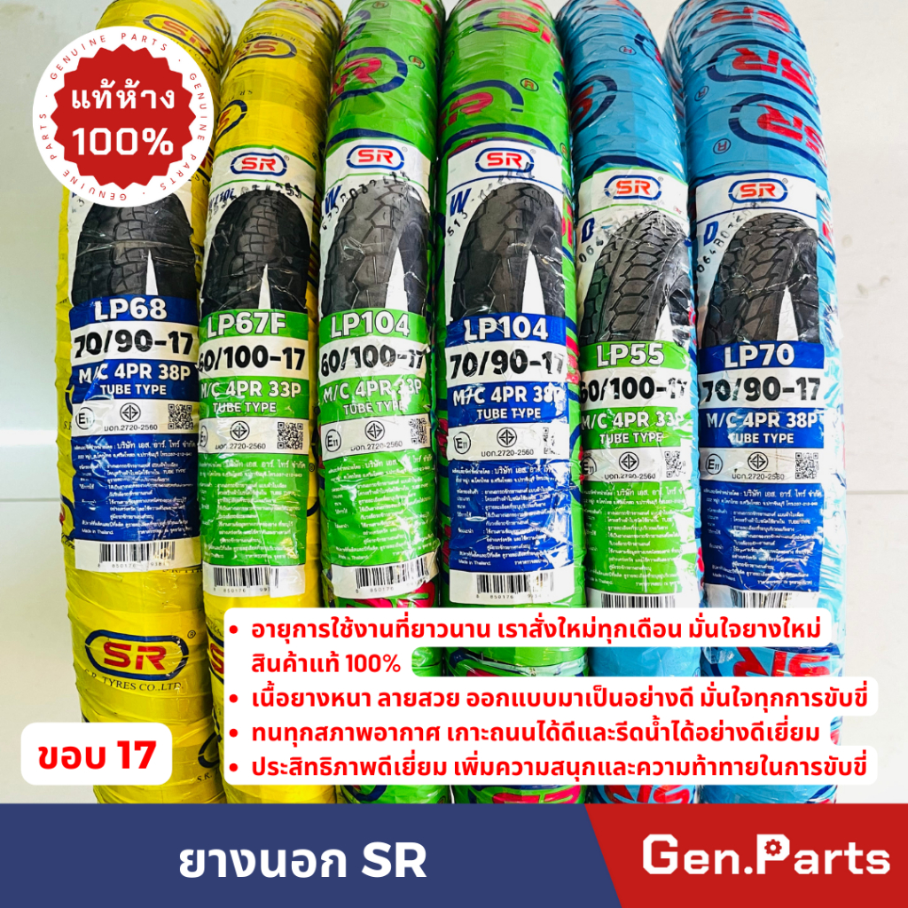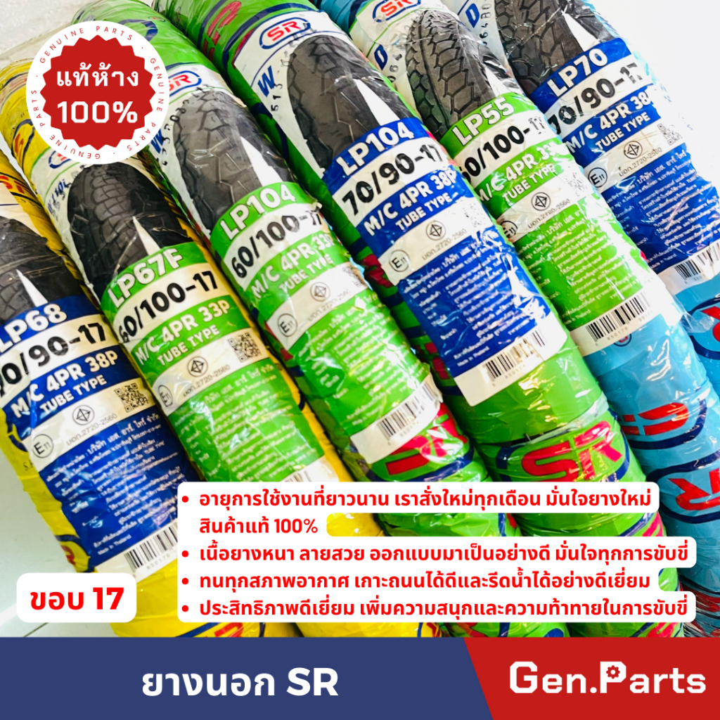 60/100-17 TT lp67f, 60/100-17 TT ống trong SR, 70/90-17 TT lp68, 70/90-17 TT ống trong SR, 80/90-17 TT lp68, 80/90-17 TT ống trong SR |