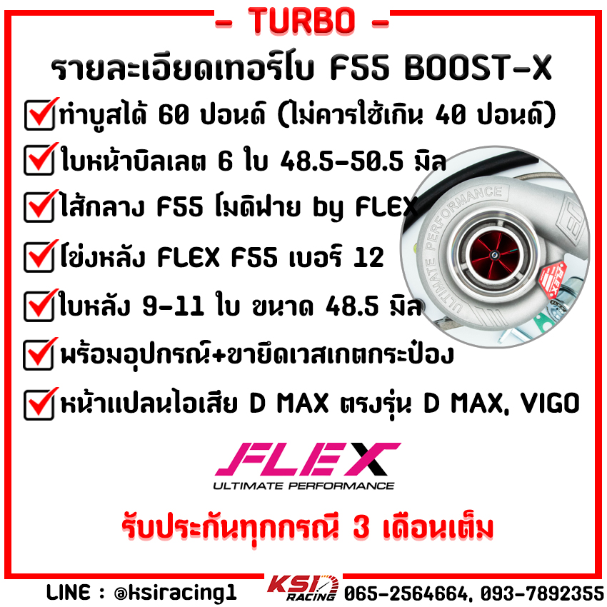 เทอร์โบ FLEX F55 BOOST-X 48.5-50.5 VEEZ แต่ง ซิ่ง ดีเซล ไส้ F55 โข่งหลัง เบอร์ 12 ใบบิลเลต